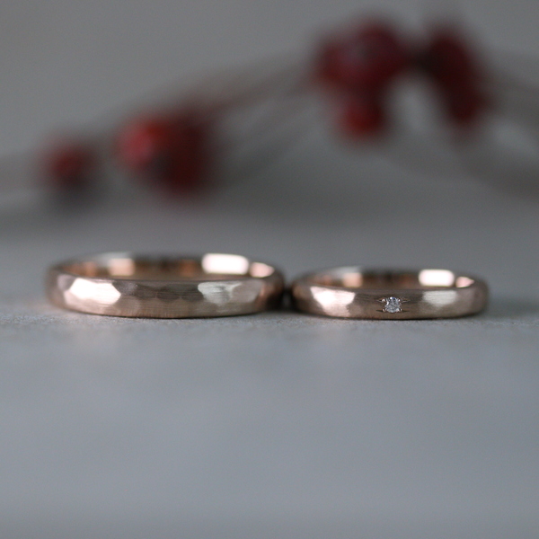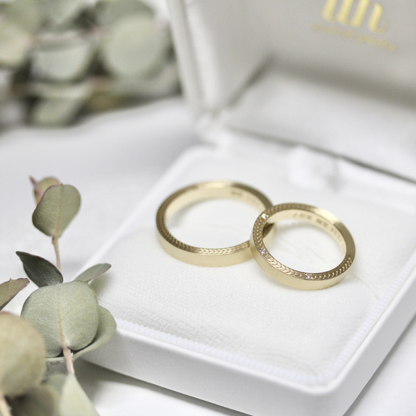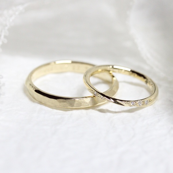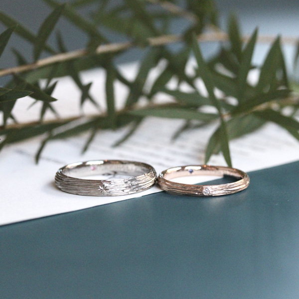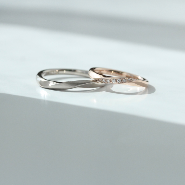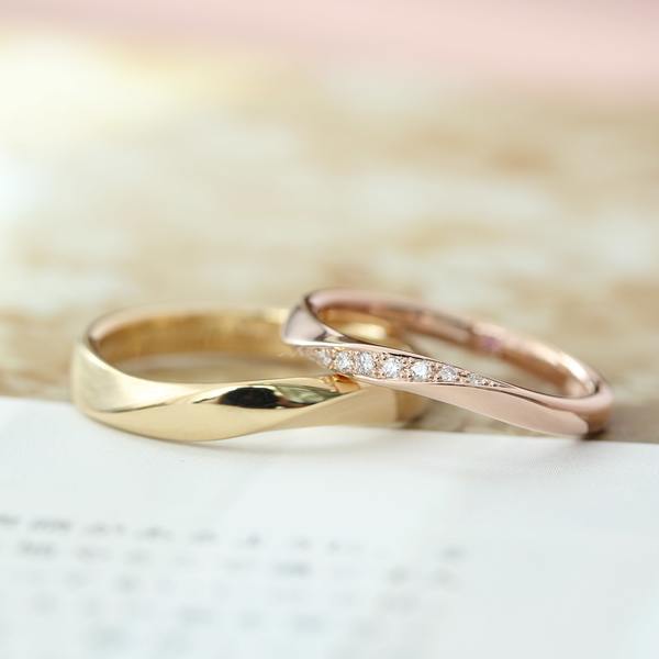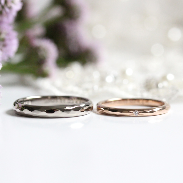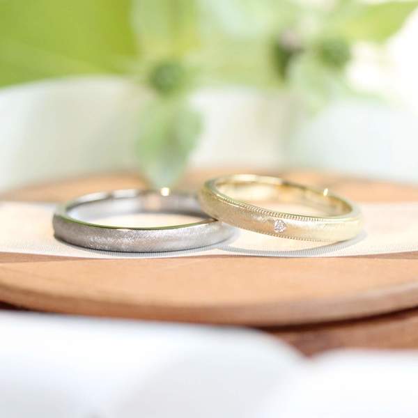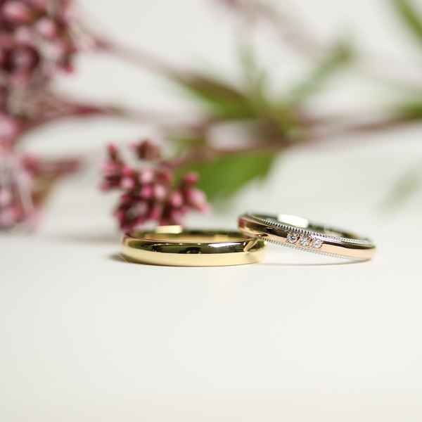 ithのオーダーメイドではK18ゴールドが4種類(イエローゴールド/ピンクゴールド/シャンパンゴールド/ホワイトゴールド)から選べます。カップルで色違いでの制作や、コンビカラーの指定も可能。カジュアルなデザインやアンティーク風の装飾とも好相性です。