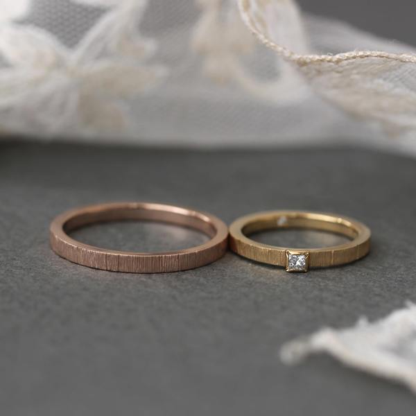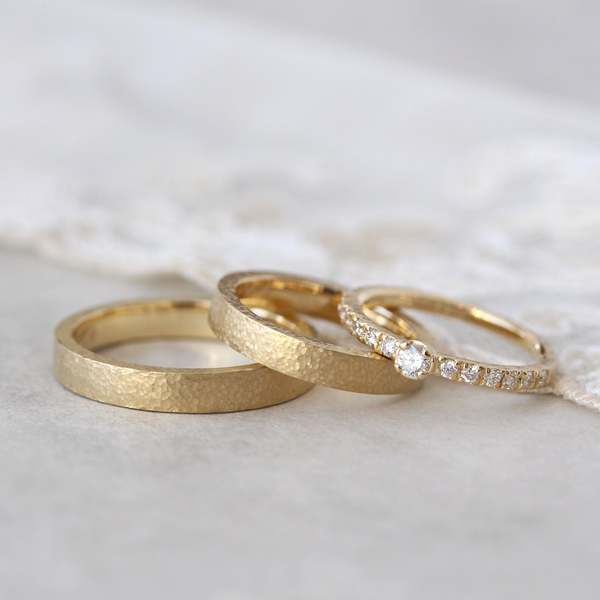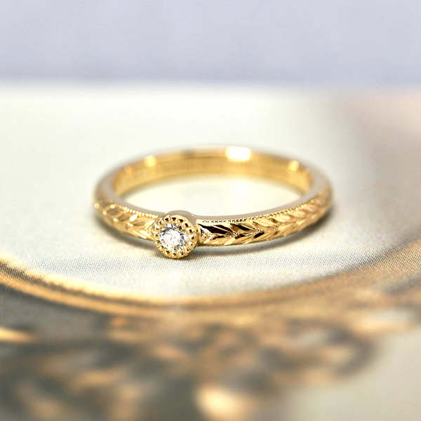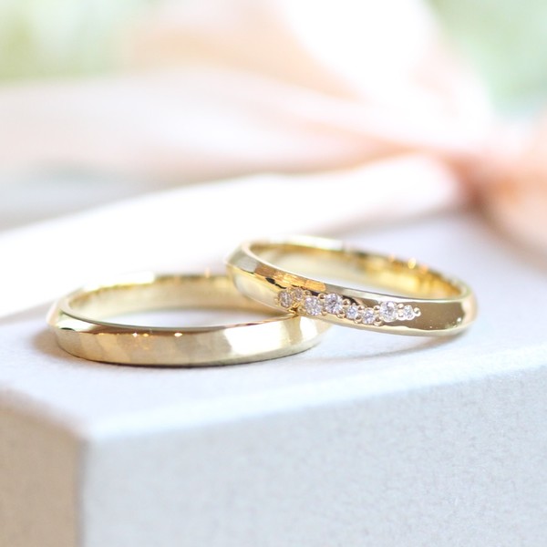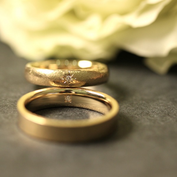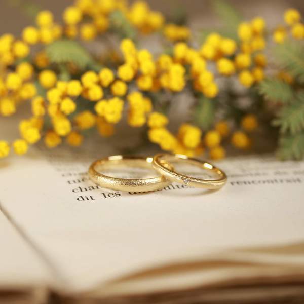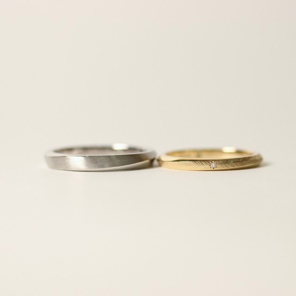 ithのオーダーメイドではK18ゴールドが4種類(イエローゴールド/ピンクゴールド/シャンパンゴールド/ホワイトゴールド)から選べます。カップルで色違いでの制作や、コンビカラーの指定も可能。カジュアルなデザインやアンティーク風の装飾とも好相性です。