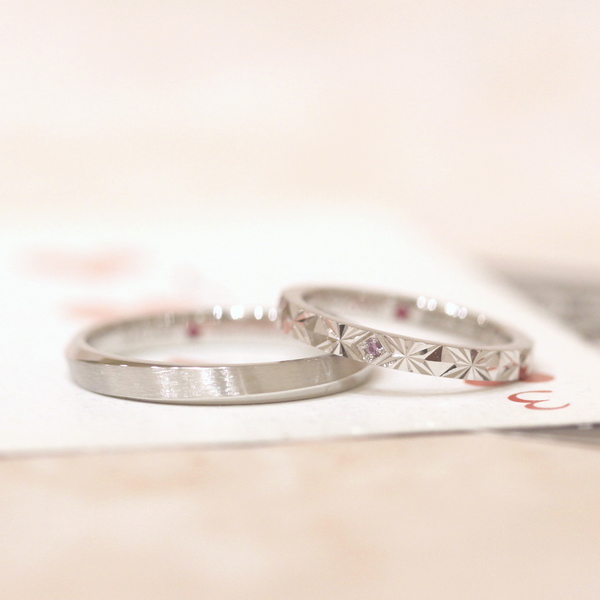 プラチナは白く洗練された、慎みを感じさせる深い色合いを持つ貴金属です。白色が持つ真新しく無垢な印象と、ブライダルのイメージも相まって、日本では結婚指輪・婚約指輪としてプラチナが好まれてきました。変色のない安定した性質は永遠の愛を思わせ、日常で取り扱いやすい点も魅力です。
