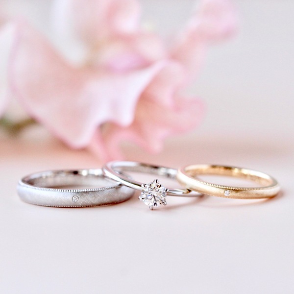 プラチナは白く洗練された、慎みを感じさせる深い色合いを持つ貴金属です。白色が持つ真新しく無垢な印象と、ブライダルのイメージも相まって、日本では結婚指輪・婚約指輪としてプラチナが好まれてきました。変色のない安定した性質は永遠の愛を思わせ、日常で取り扱いやすい点も魅力です。
