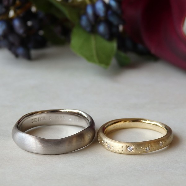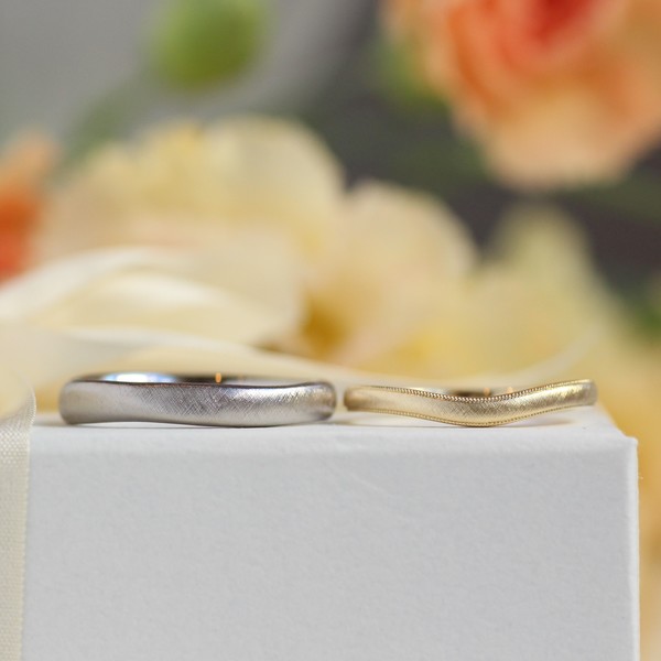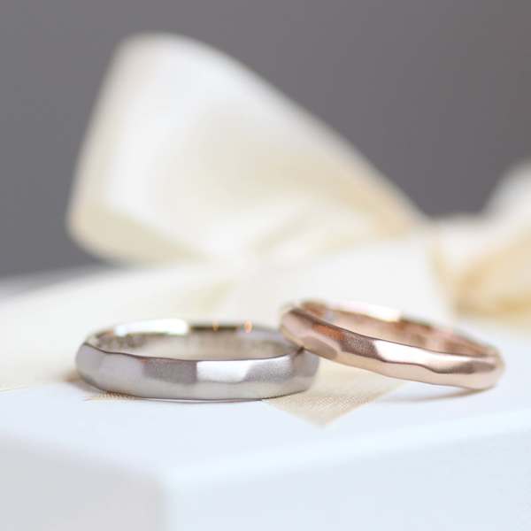 ithのオーダーメイドではK18ゴールドが4種類(イエローゴールド/ピンクゴールド/シャンパンゴールド/ホワイトゴールド)から選べます。カップルで色違いでの制作や、コンビカラーの指定も可能。カジュアルなデザインやアンティーク風の装飾とも好相性です。