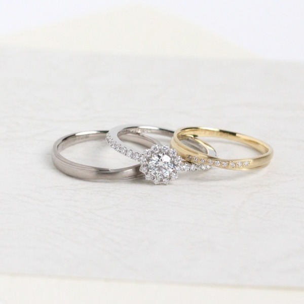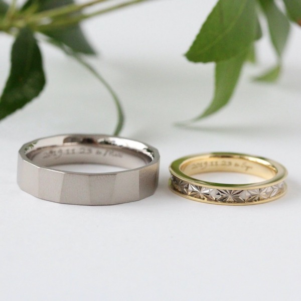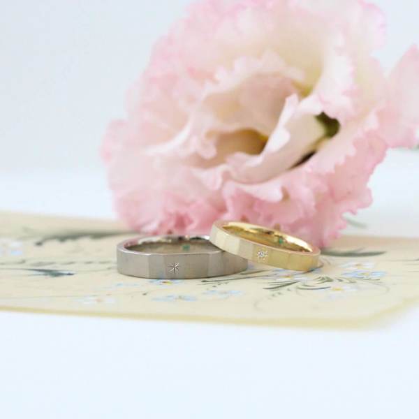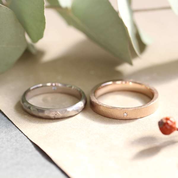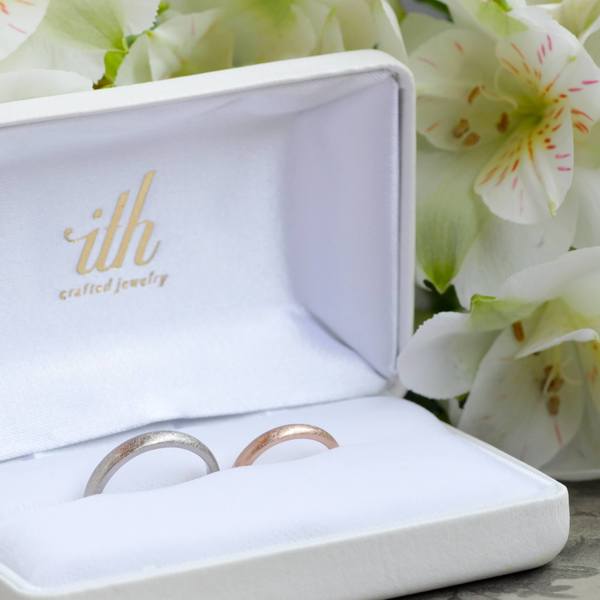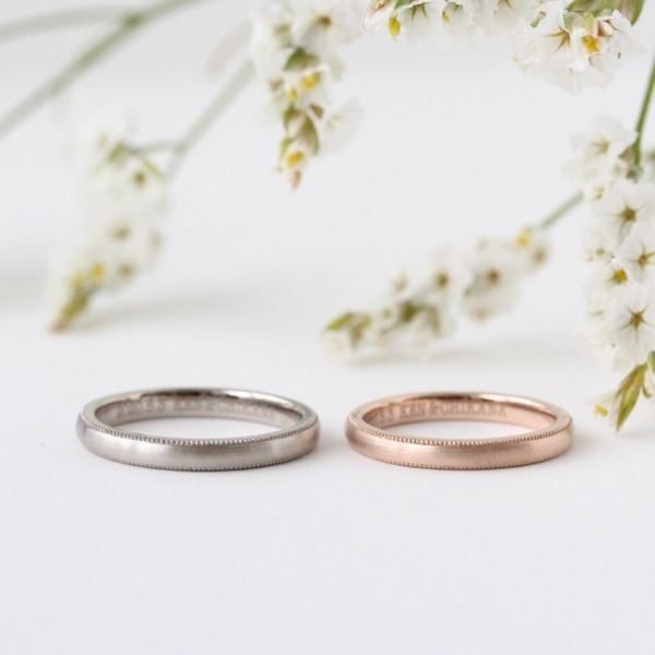 ithのオーダーメイドではK18ゴールドが4種類(イエローゴールド/ピンクゴールド/シャンパンゴールド/ホワイトゴールド)から選べます。カップルで色違いでの制作や、コンビカラーの指定も可能。カジュアルなデザインやアンティーク風の装飾とも好相性です。