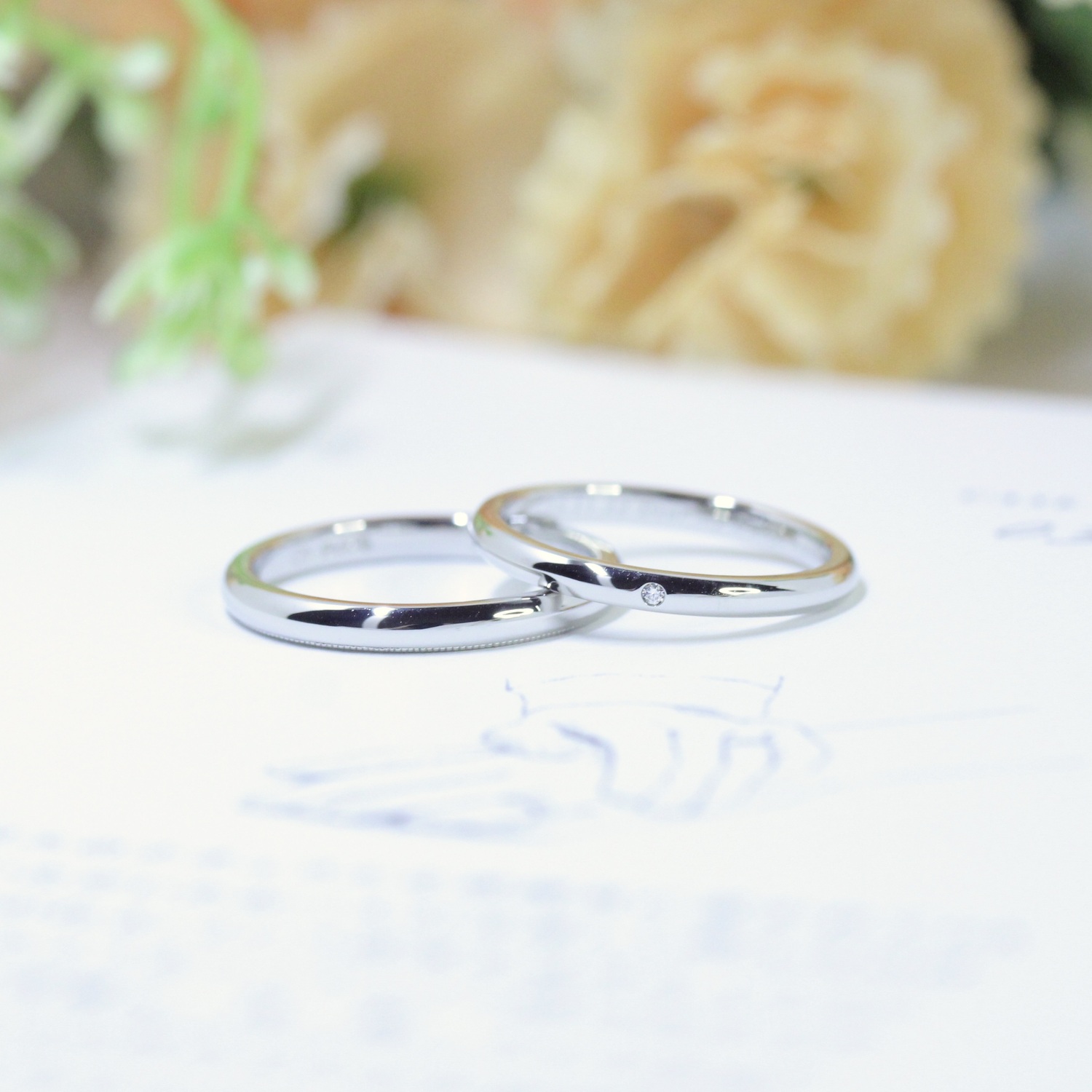 女性の指輪のトップには、ダイヤモンドを一粒。