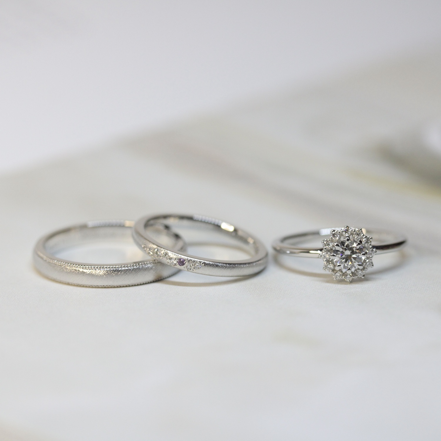 お相手さまへの優しい想いを込めた結婚指輪になりました。