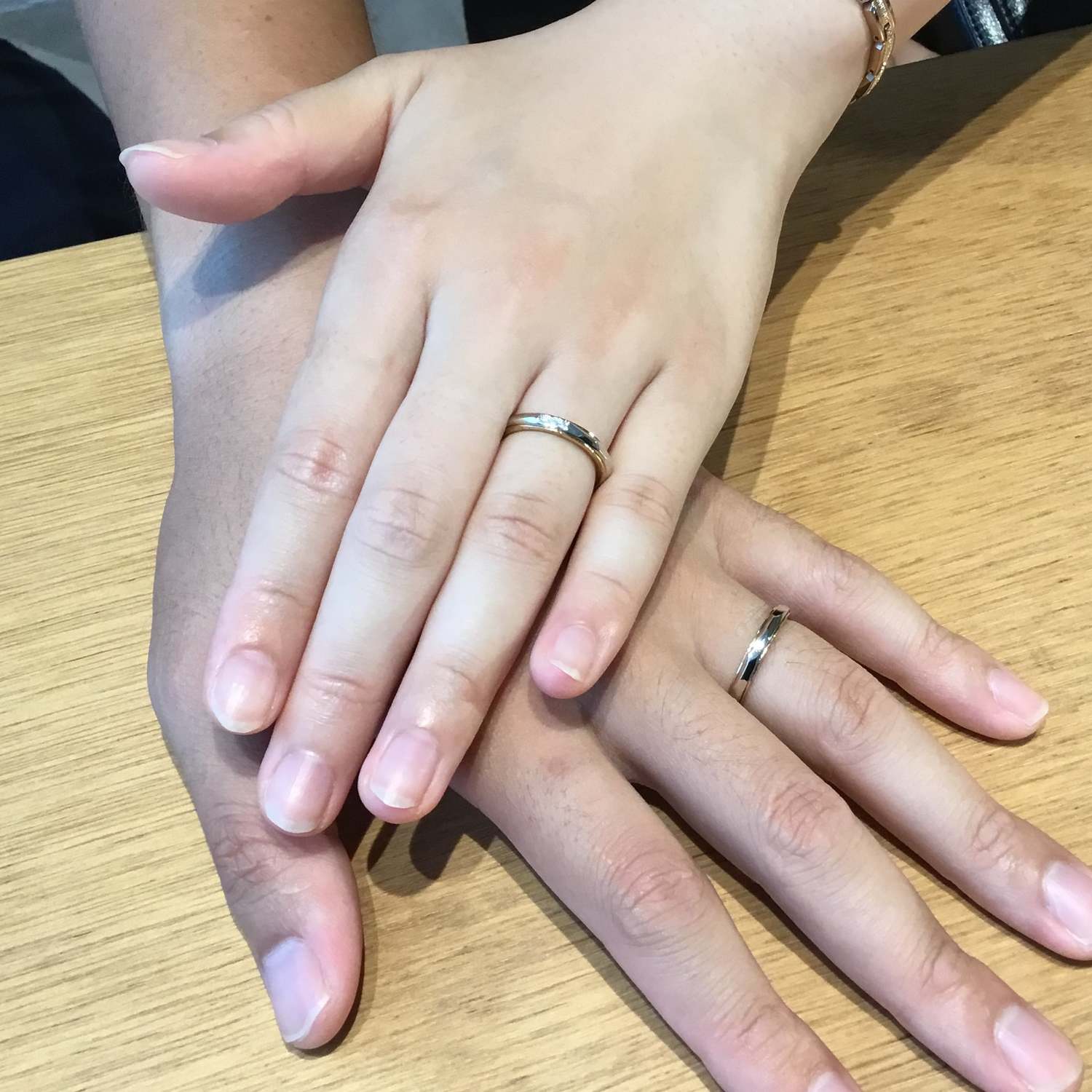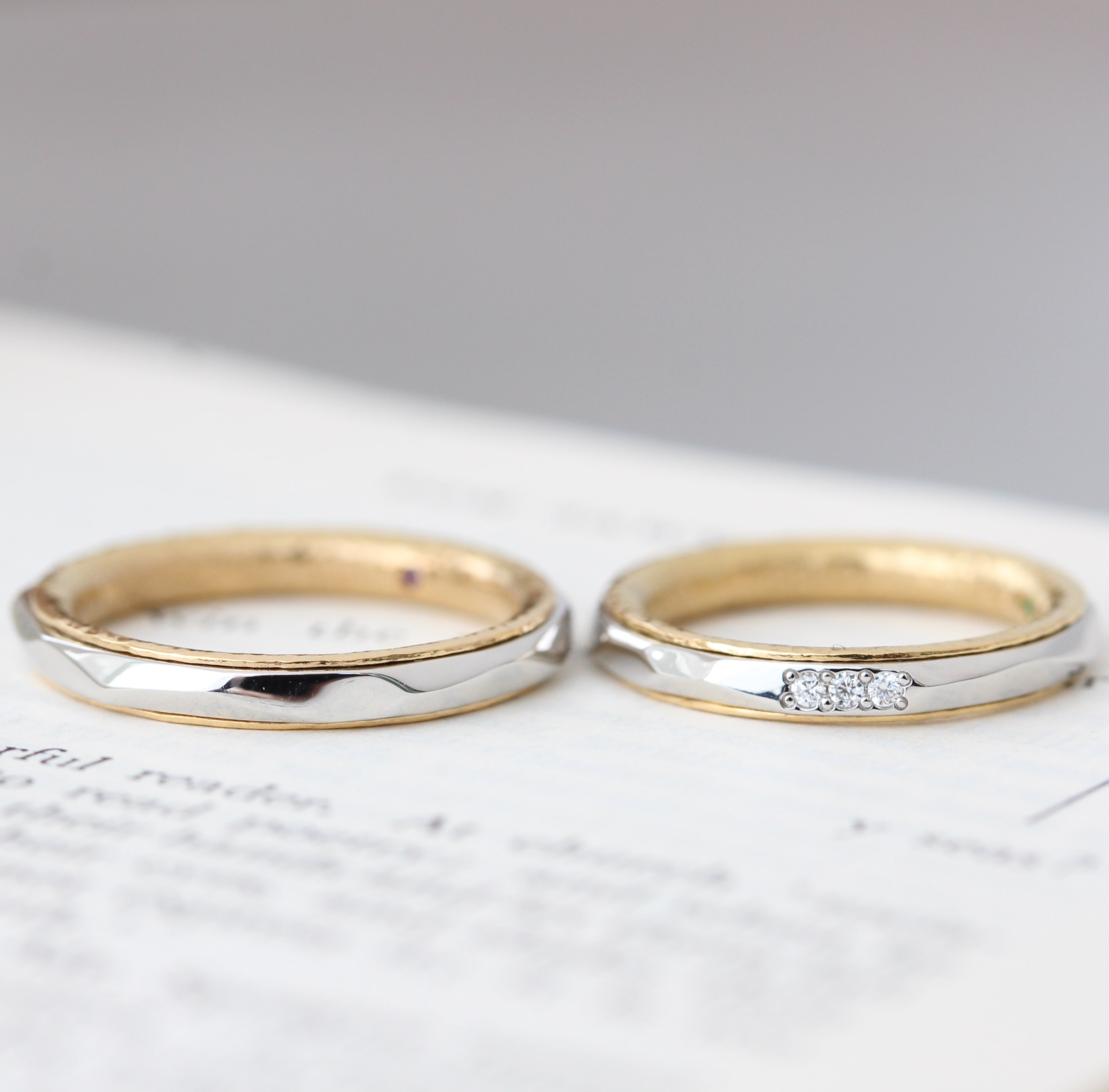 元々、2つの金属を使用した指輪を探していたお二人。