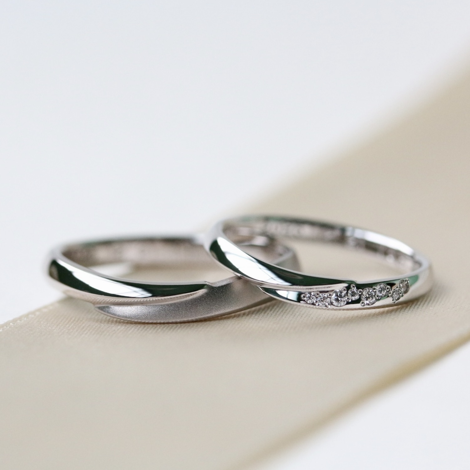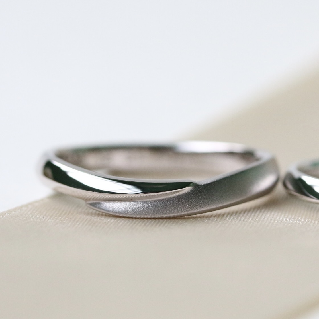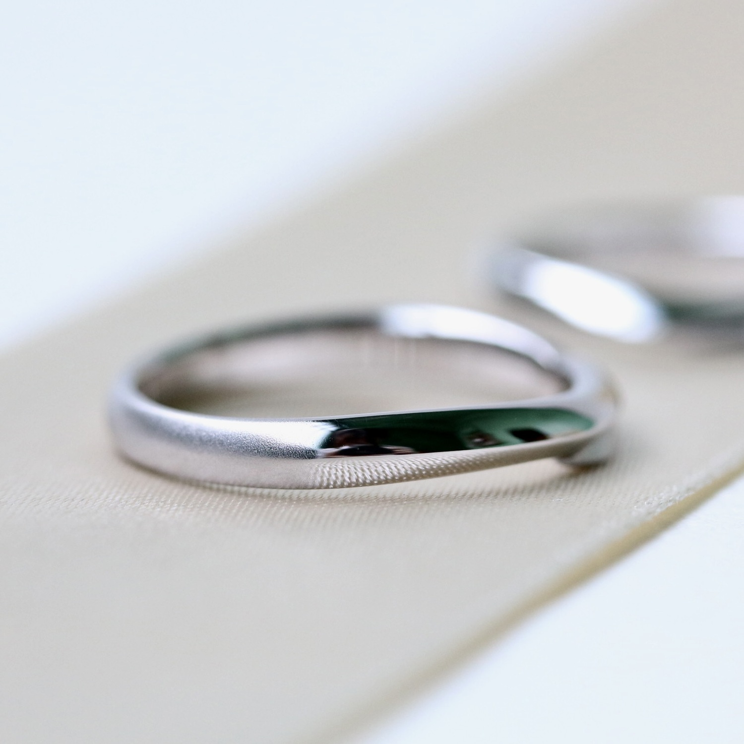 男性のリングは、“鏡面仕上げ”の輝きと、