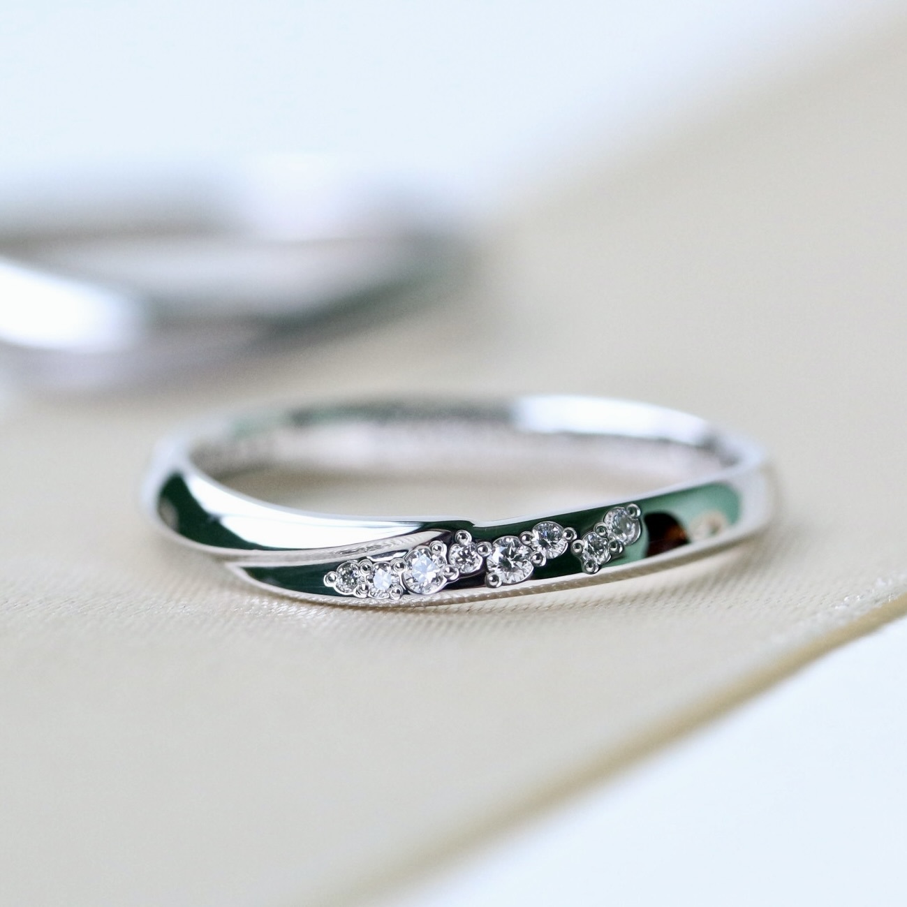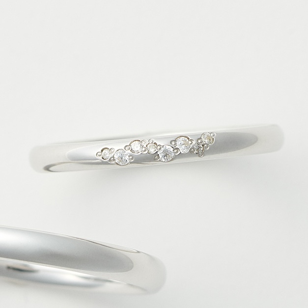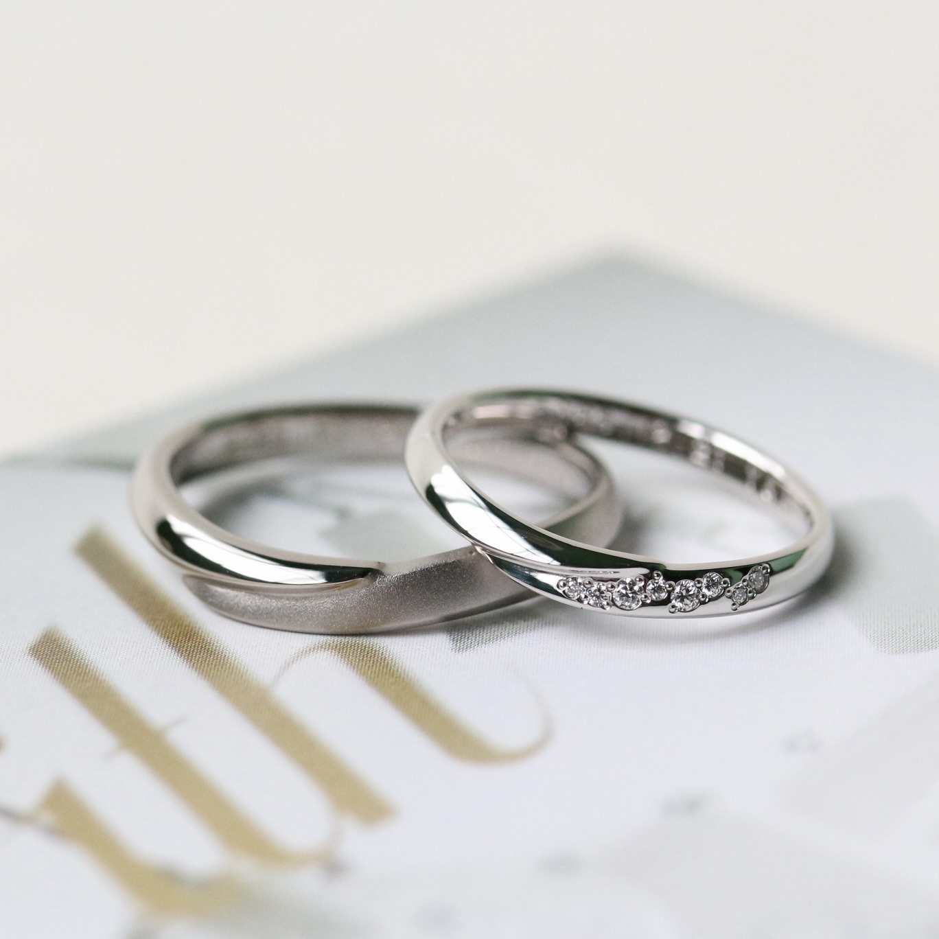 男性のリングは、“鏡面仕上げ”の輝きと、