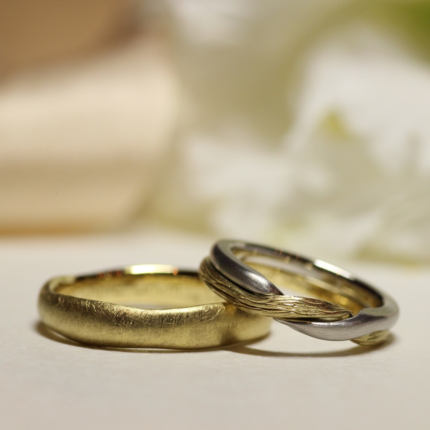 それぞれデザインは全く違いますが、お二人ともつやを抑えた風合いにし、柔らかい曲線が存在することで