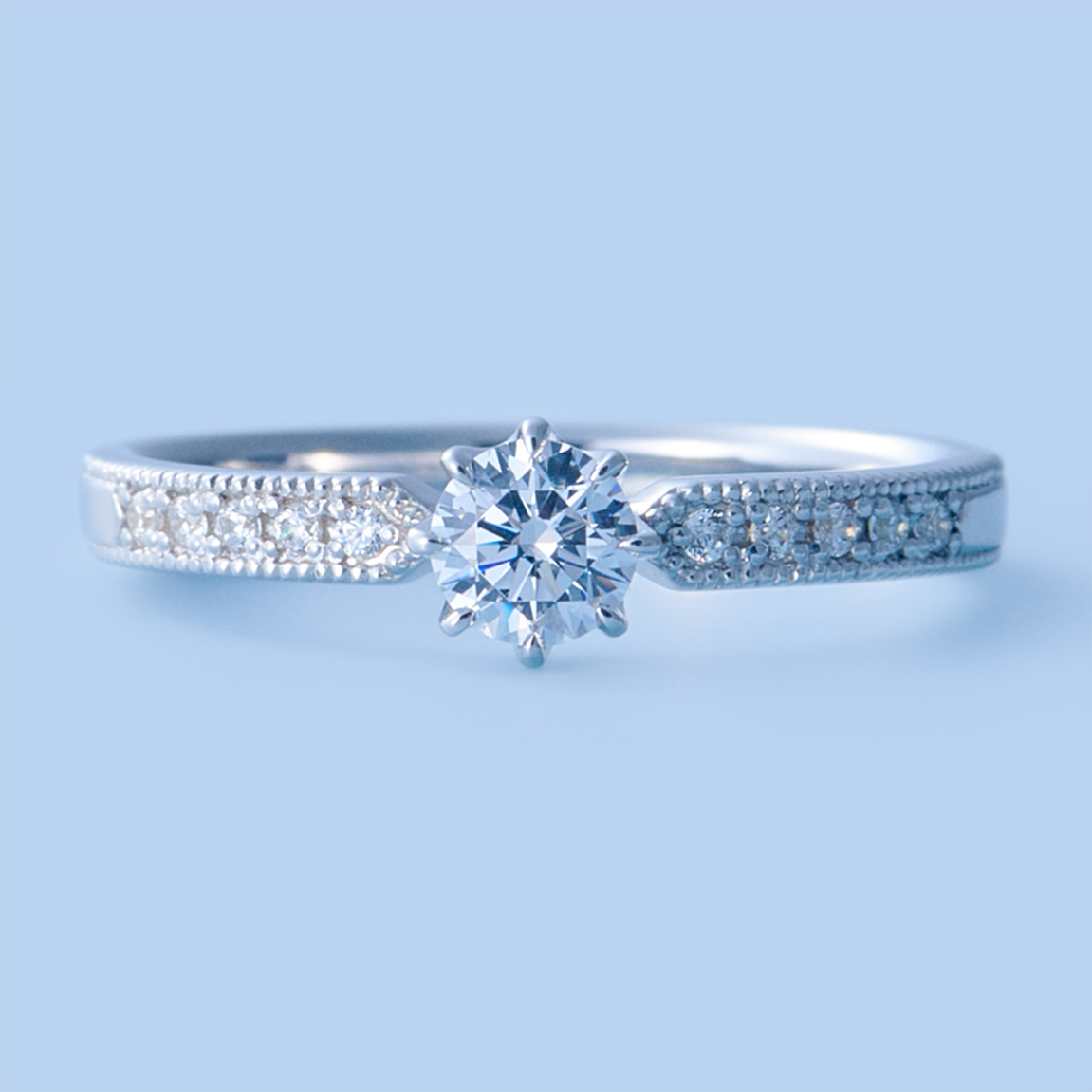 メレダイヤとミル打ちが敷き詰められたようなデザイン。