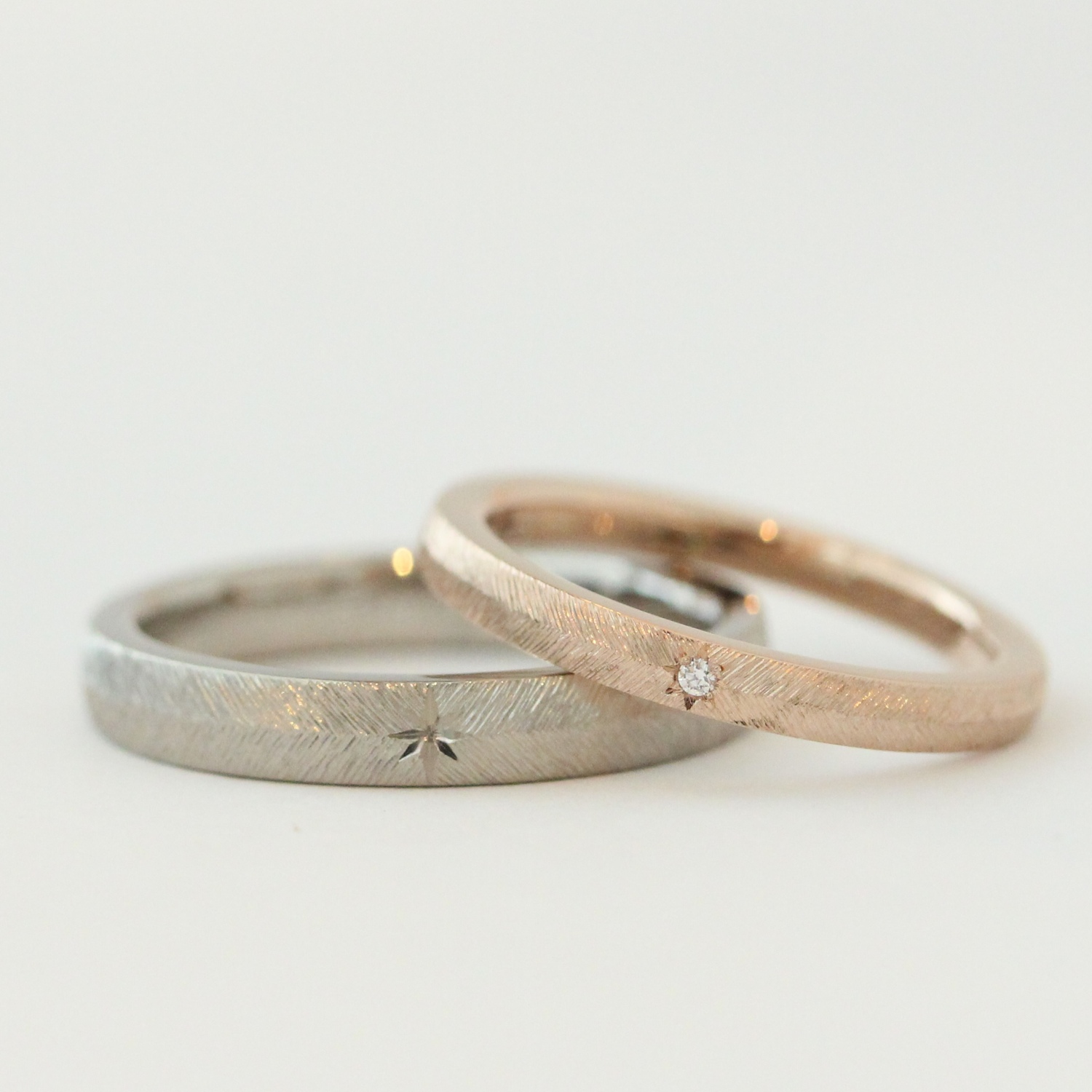 羽のような、ふんわりとした彫り模様の結婚指輪を探して