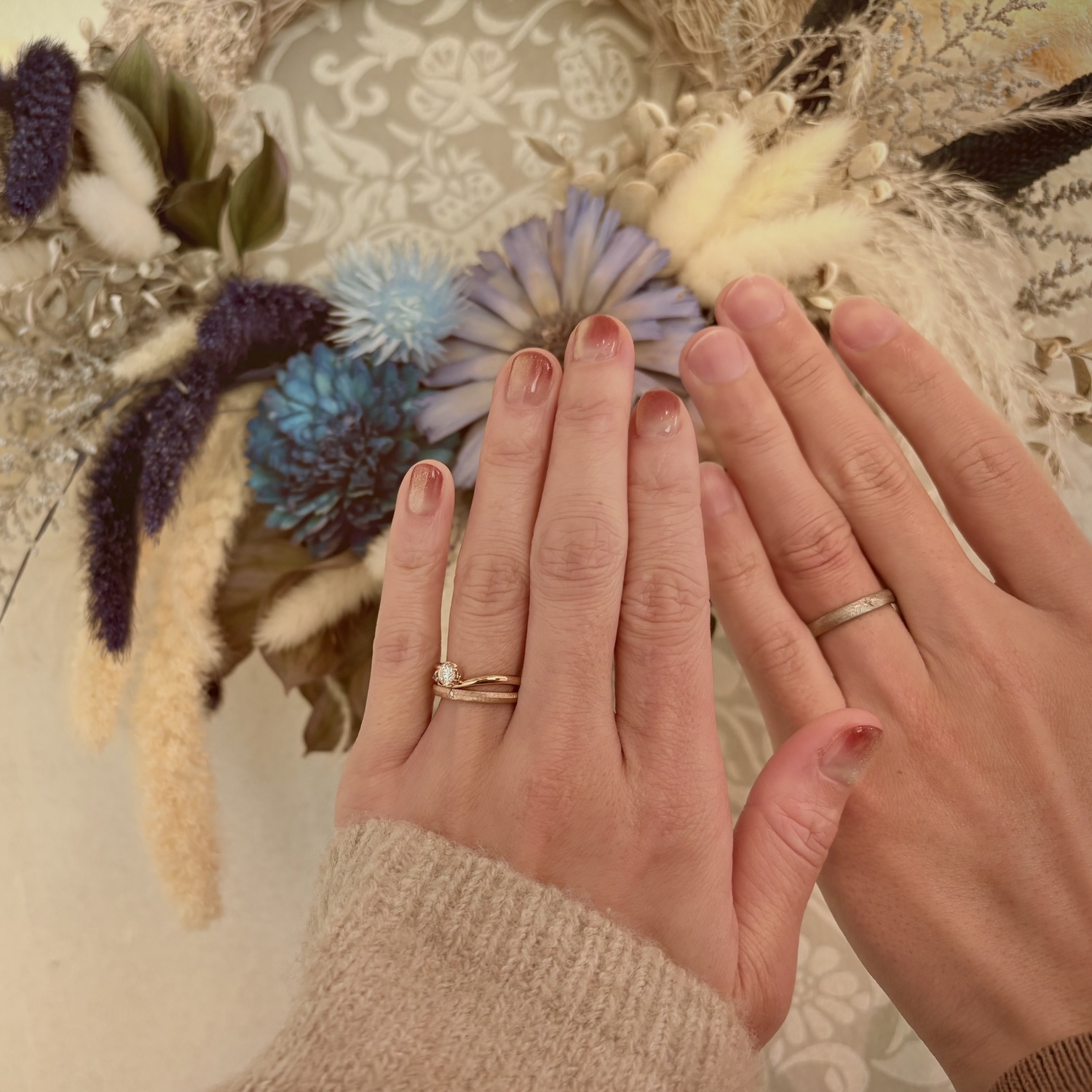 婚約指輪との重ね着けも大切にしていらっしゃいましたね。