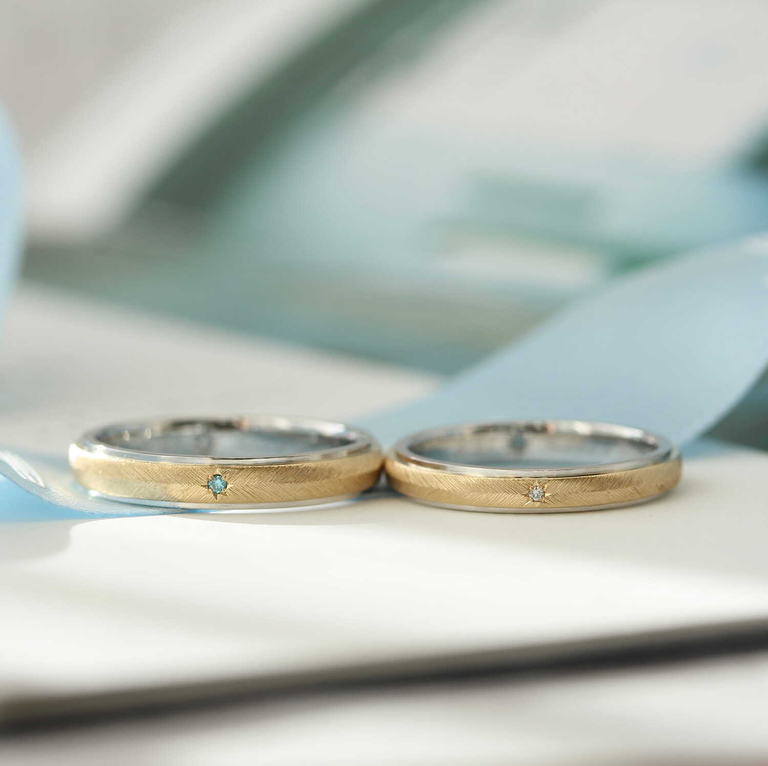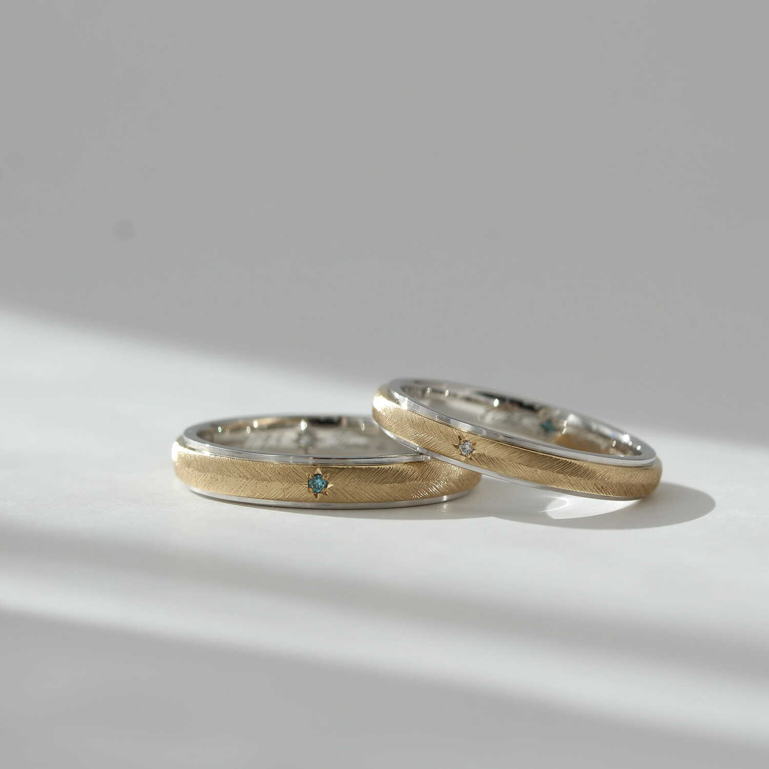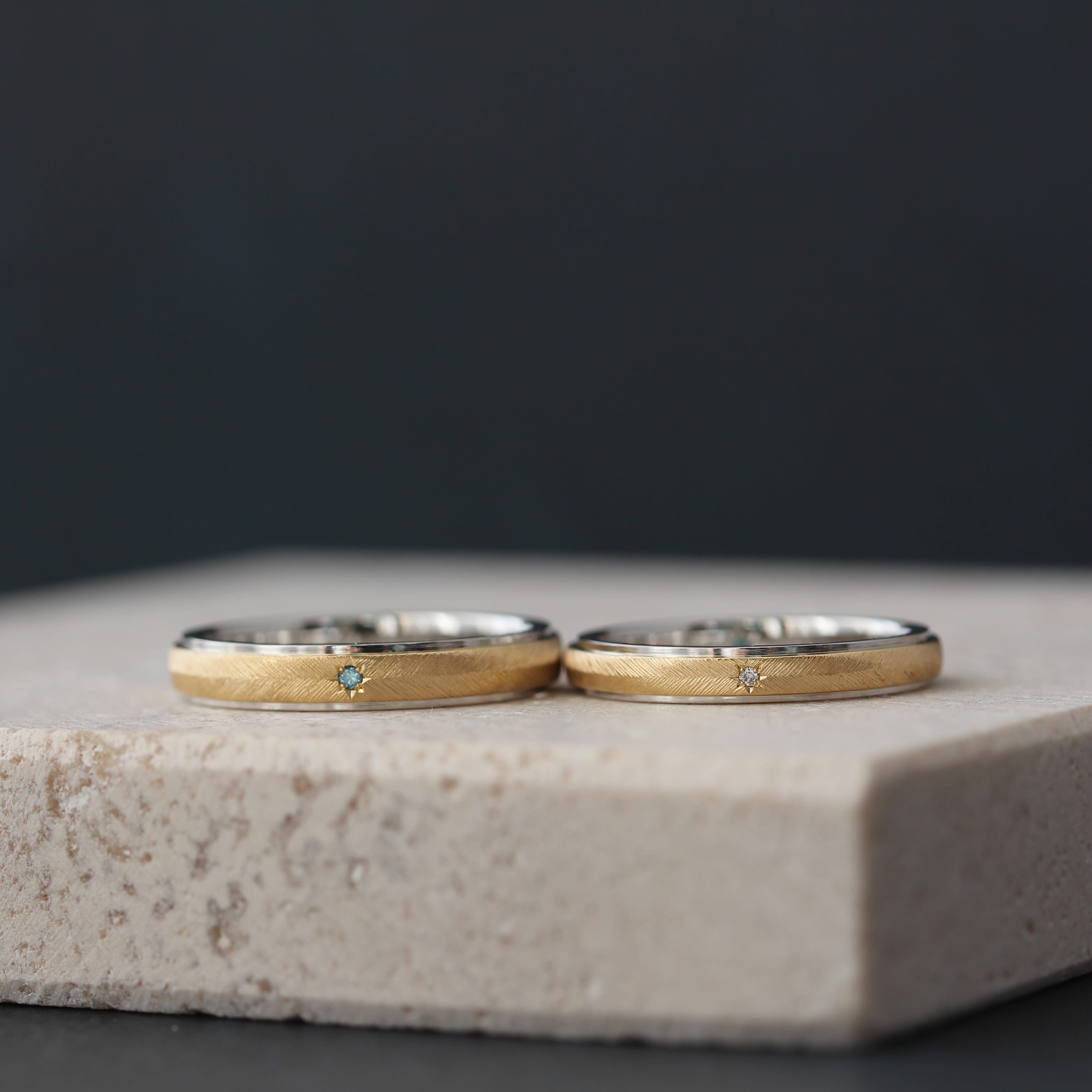 あえて異なる色味のダイヤモンドを