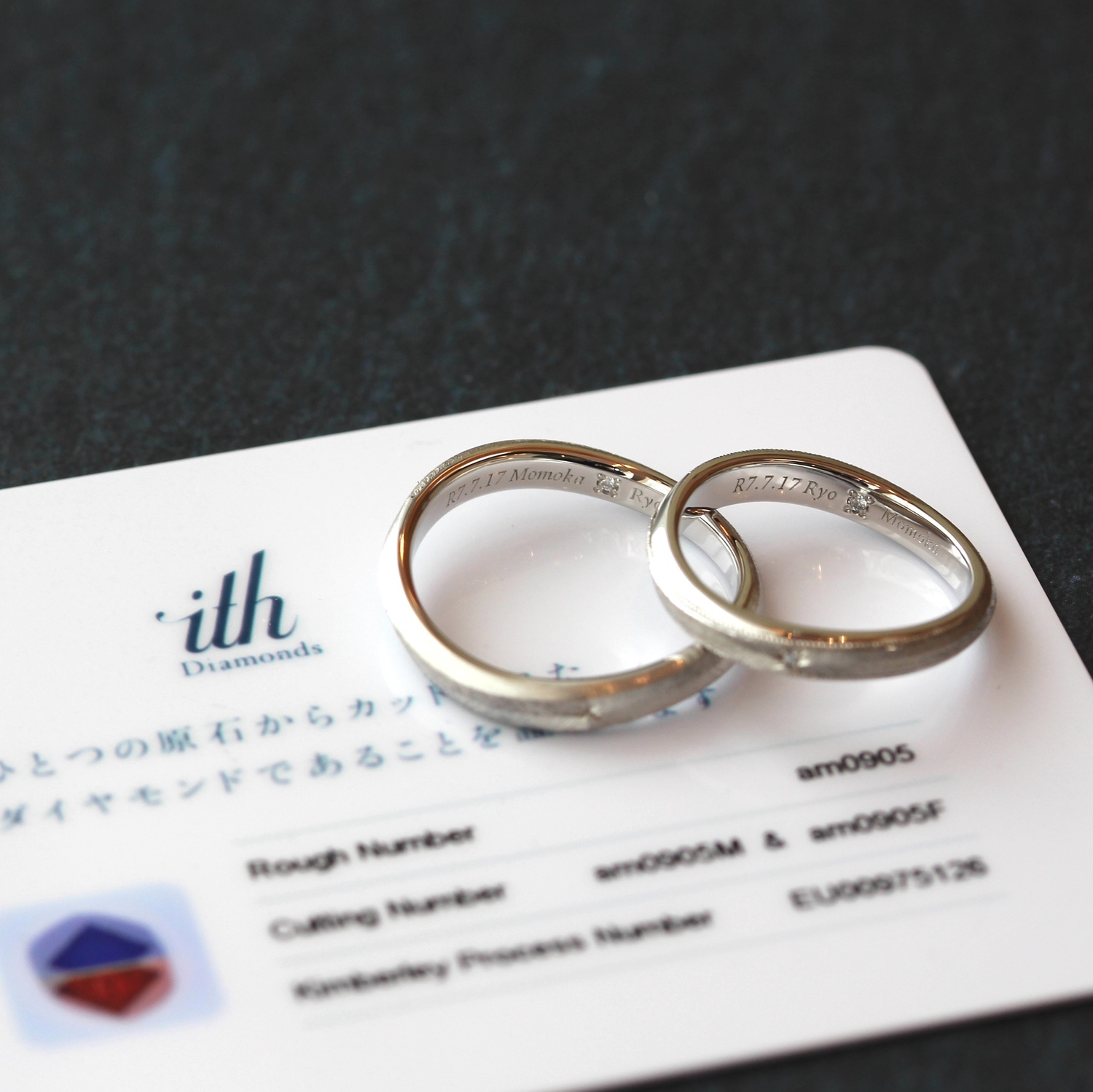 刻印文字と一つの原石から分かち合うithダイヤモンドをお入れし、