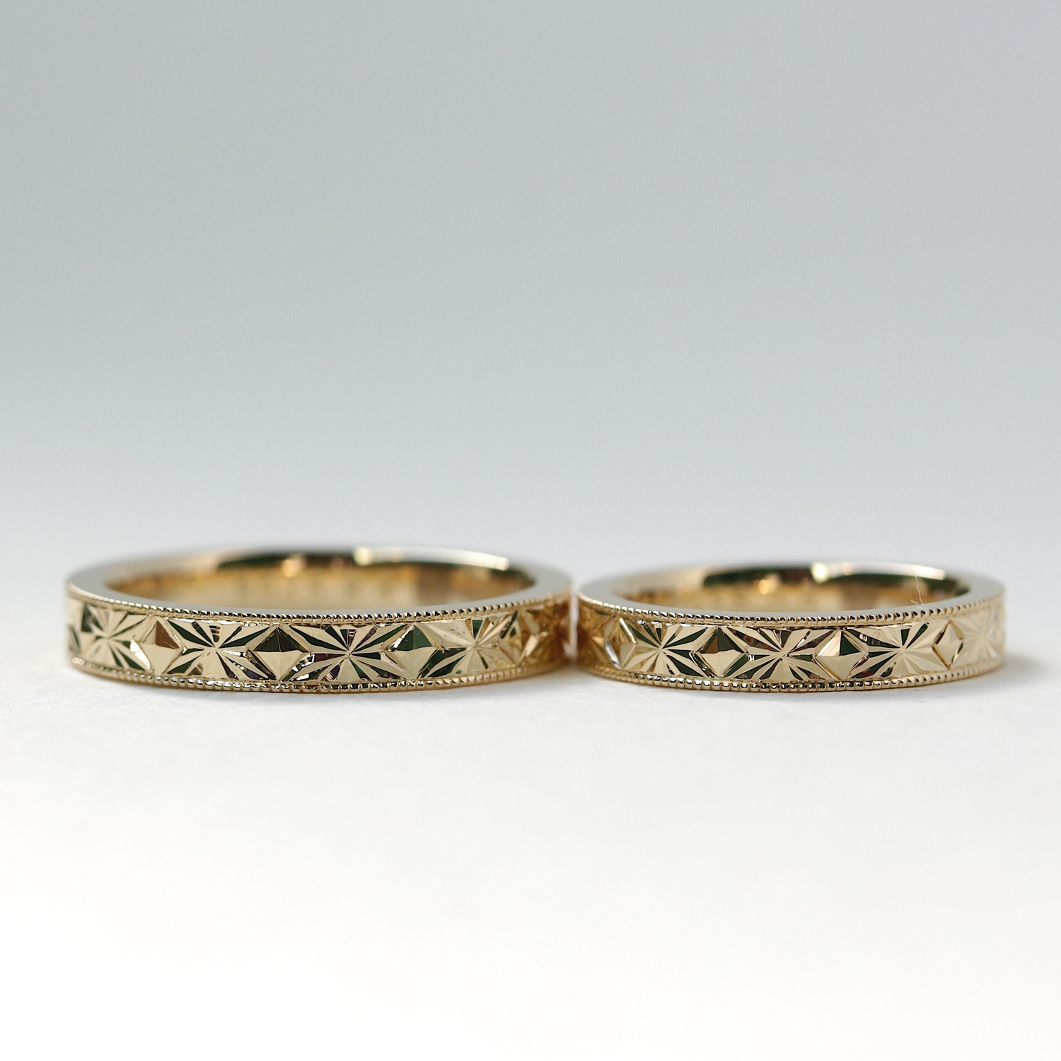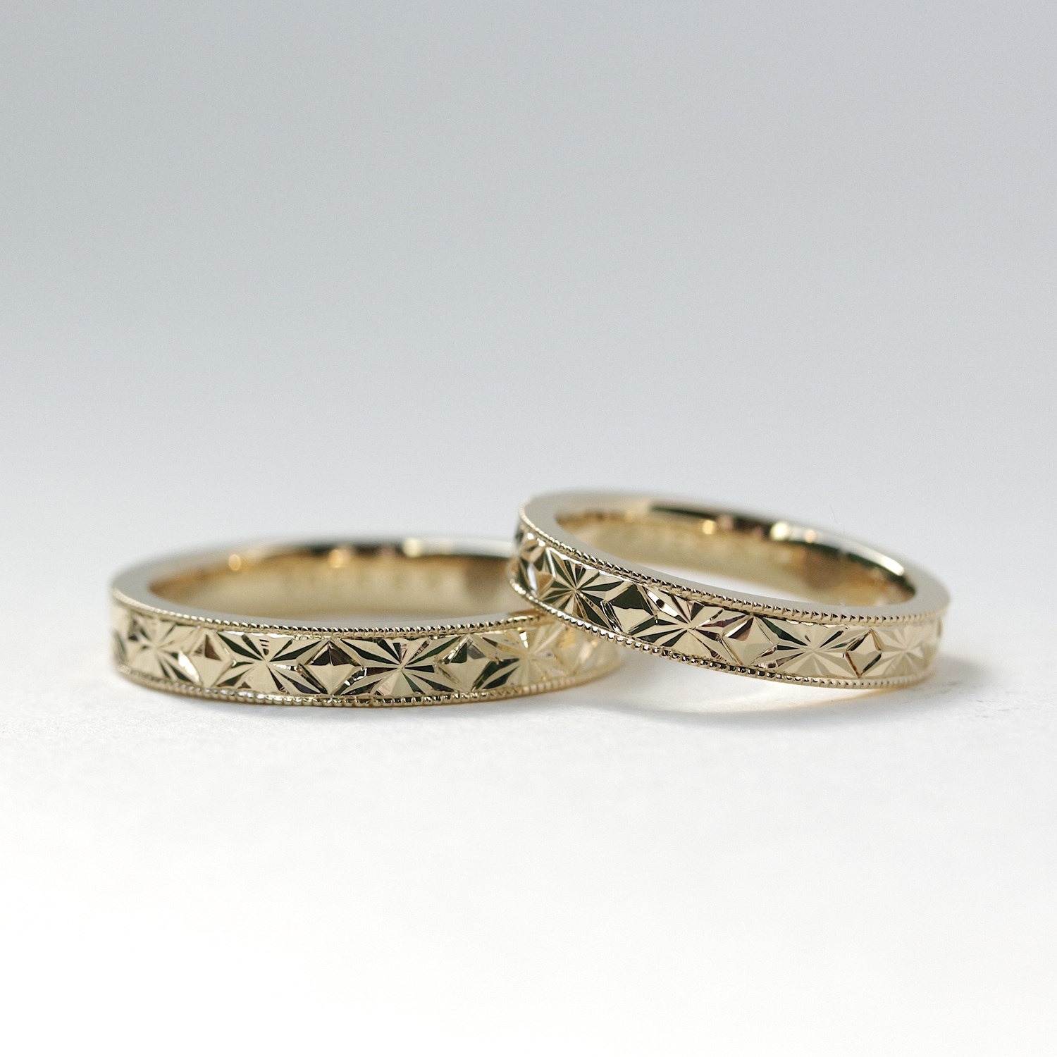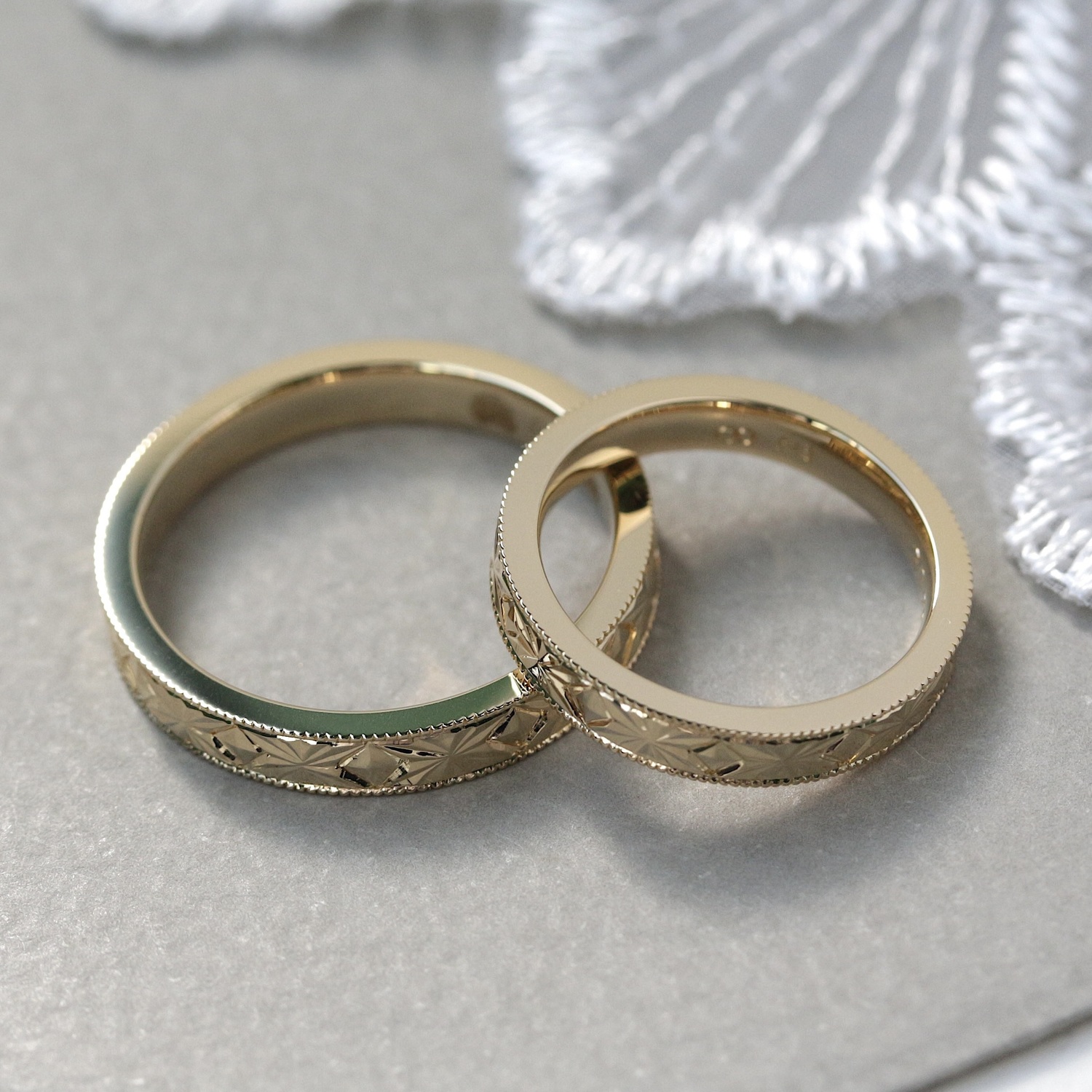 彫模様の結婚指輪に惹かれ、