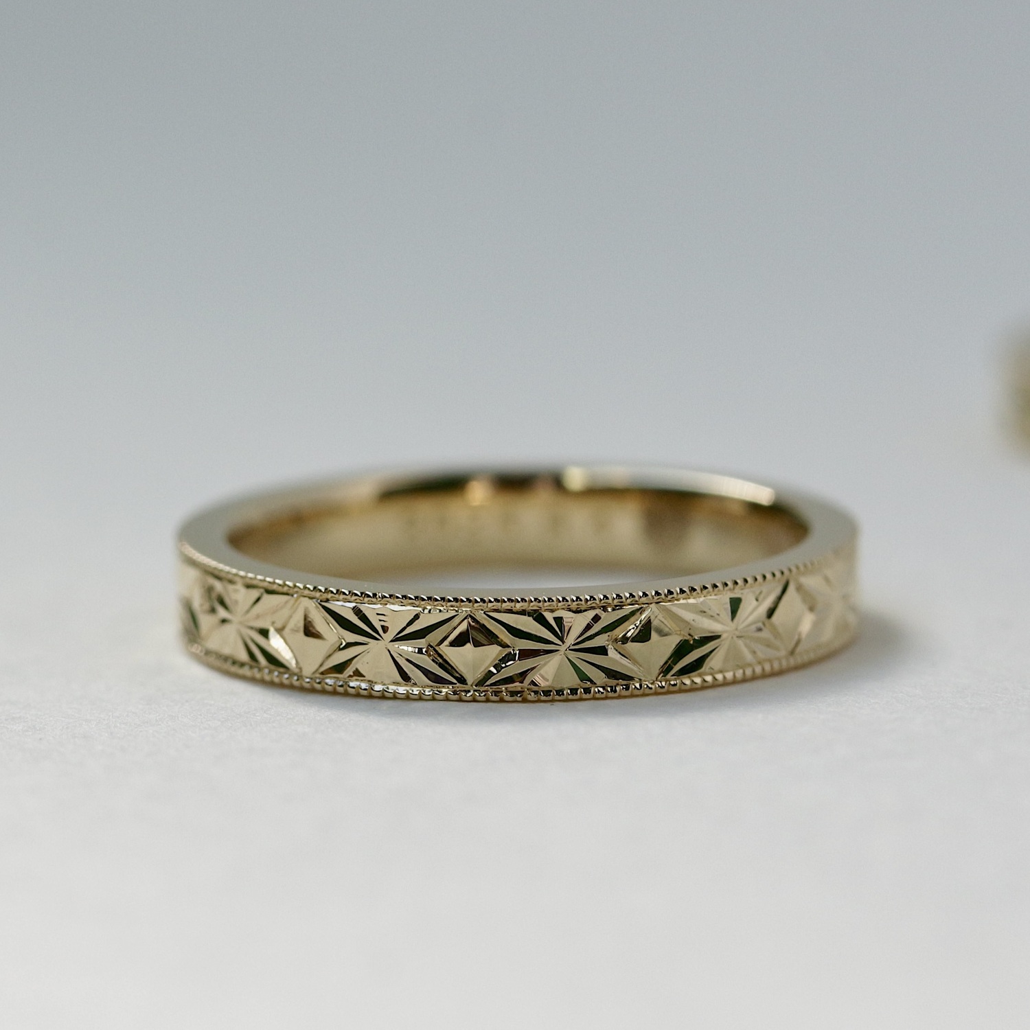 指輪のフチに"ミル打ち"をお入れしました。