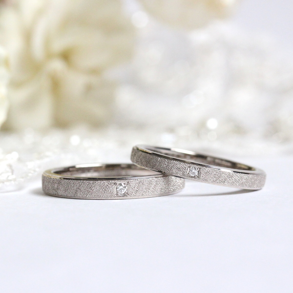すっきりとした見た目のマス留めでダイヤモンドをあしらい、よりシャープな印象に仕上げました。
