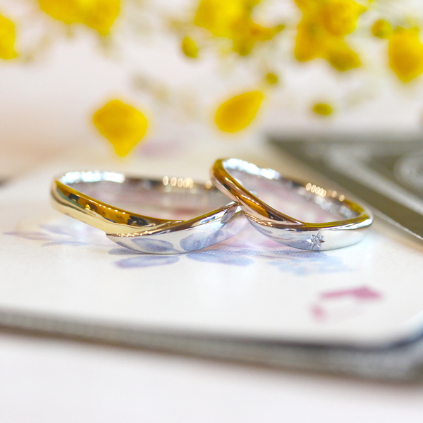 “音と音を結び、なめらかに演奏する” という音楽用語の意味を持つ《レガート》。二人が結ばれた縁への感謝をいつまでも忘れないよう、願いを込めて名づけられた結婚指輪。