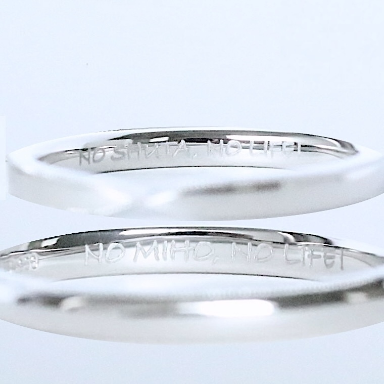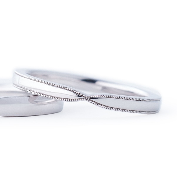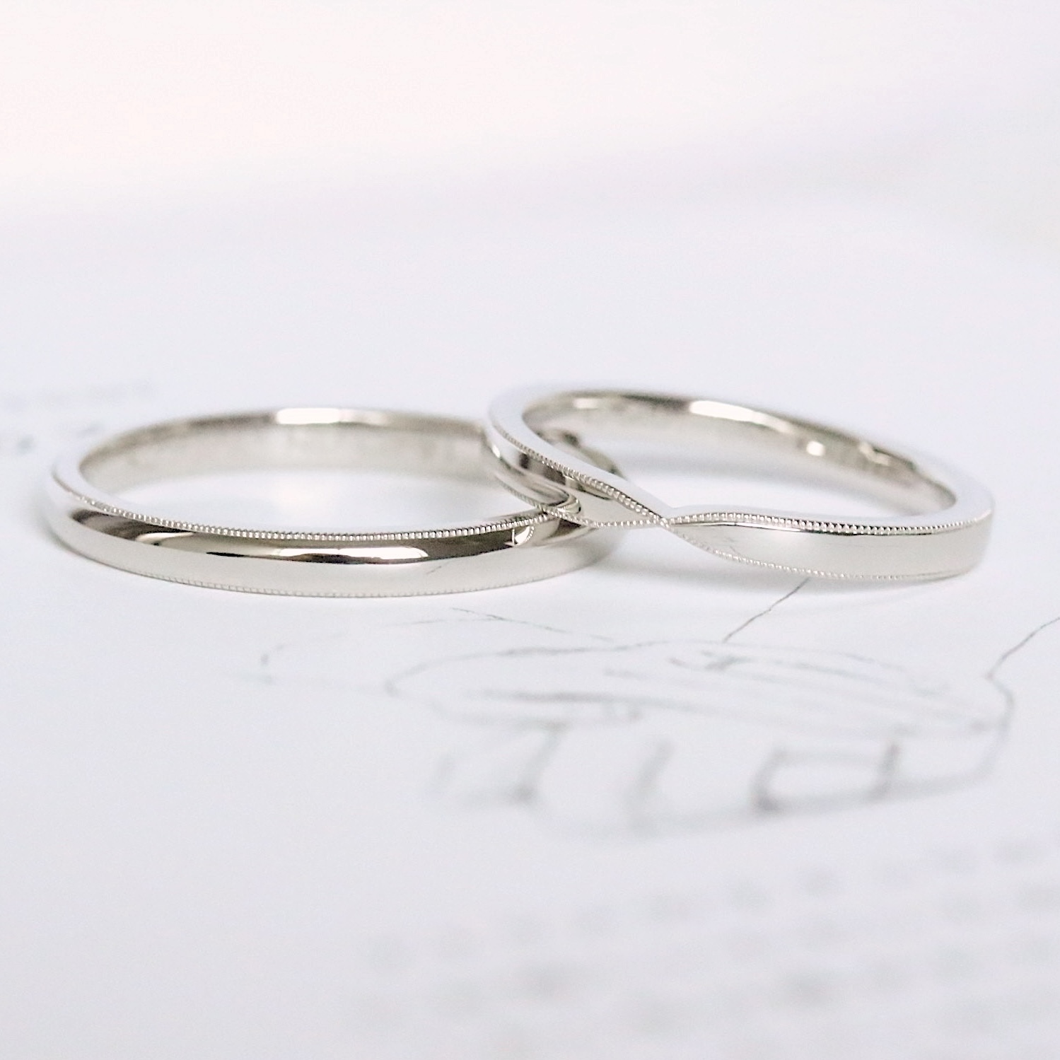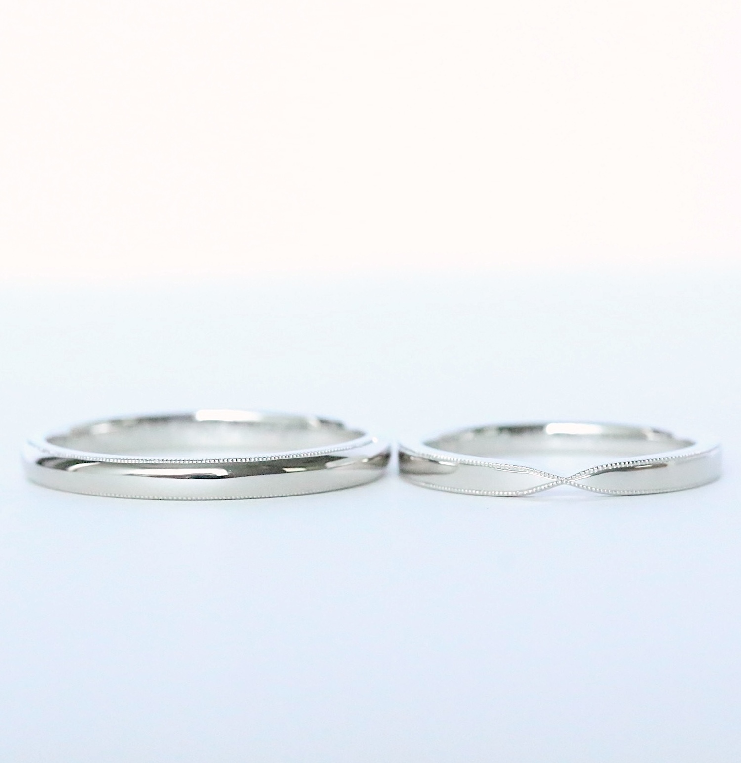 同じ大きさの“ミル打ち”をそれぞれの指輪に施し