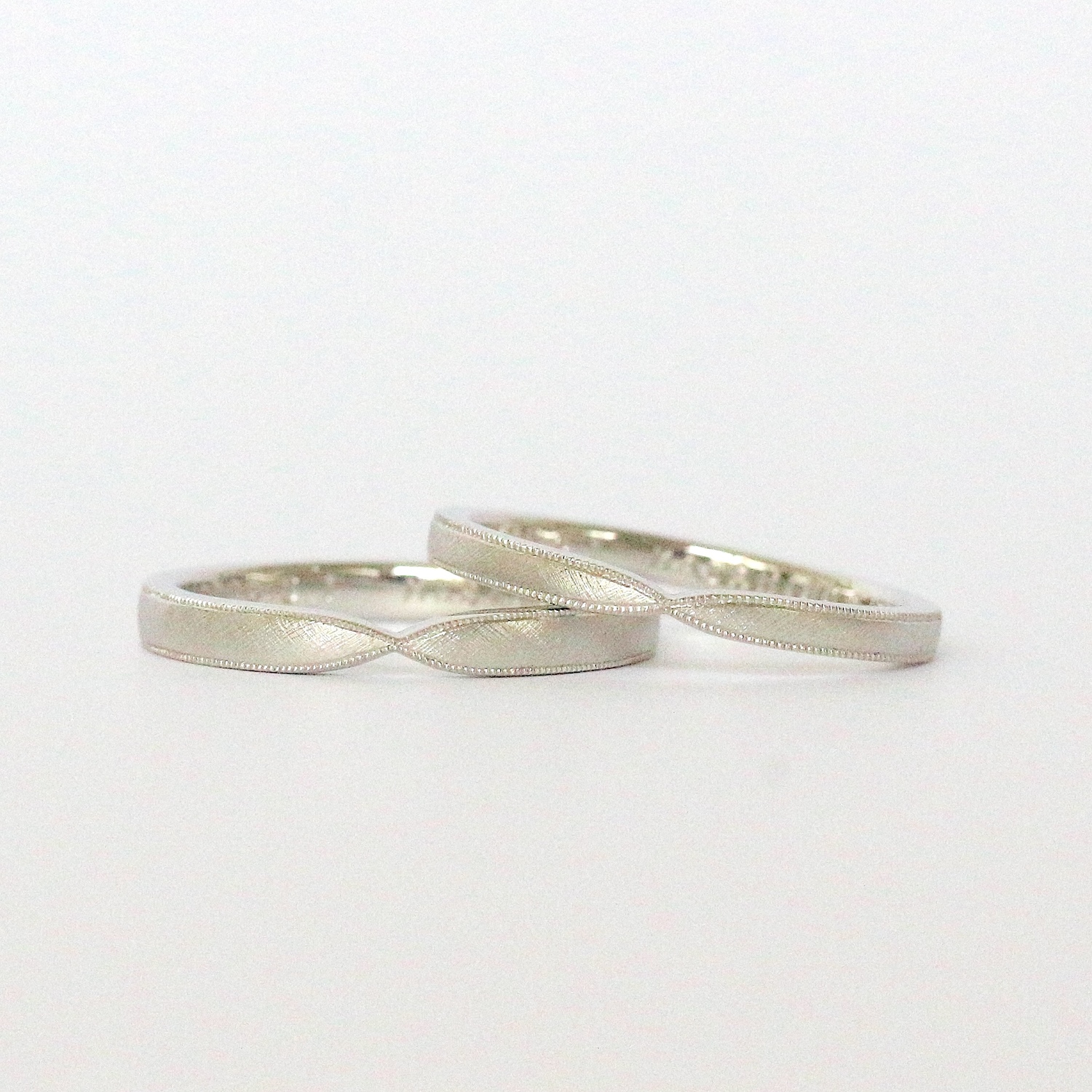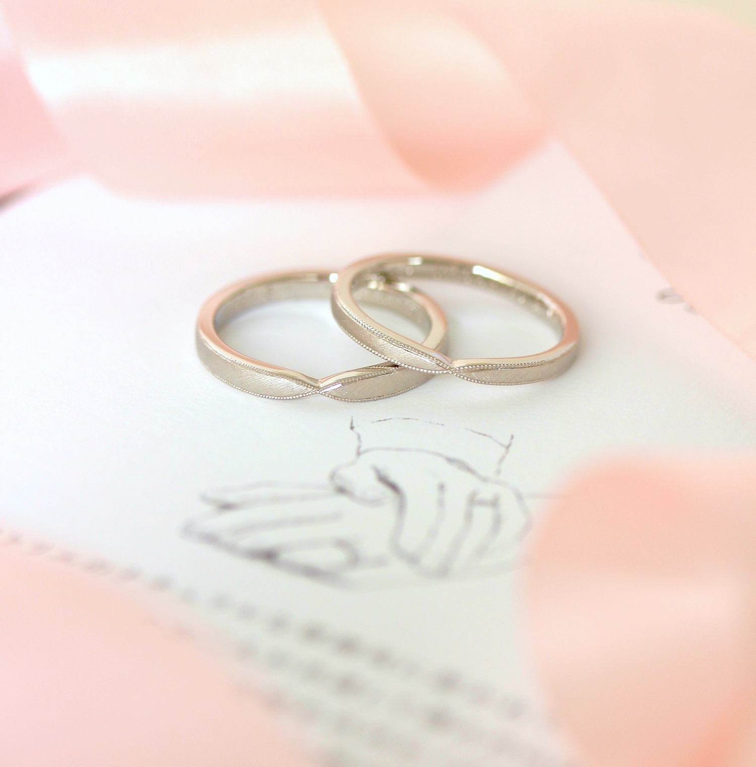 薬指を柔らかくリボンが結ばれているデザインとなり、