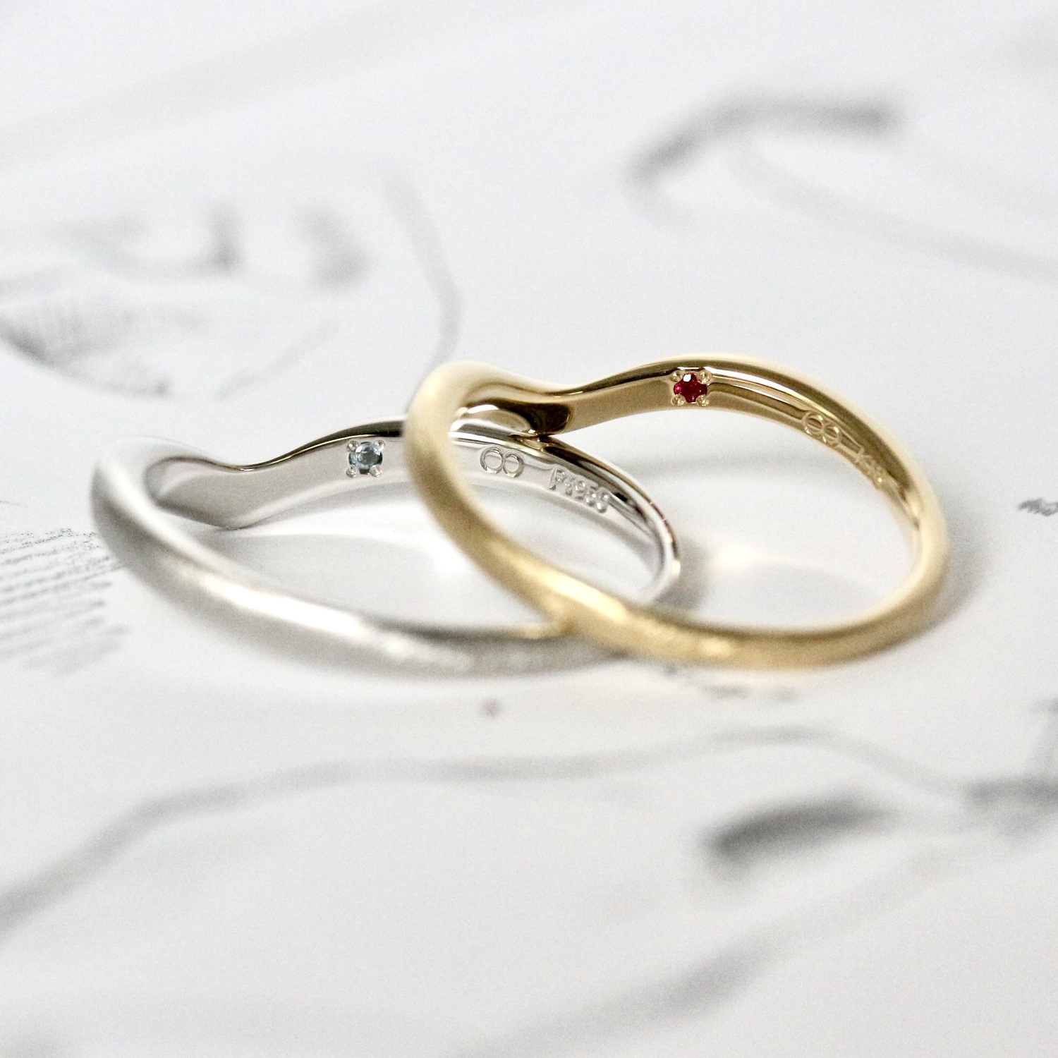 指輪の内側には、お互いの誕生石を交換こして留めました。