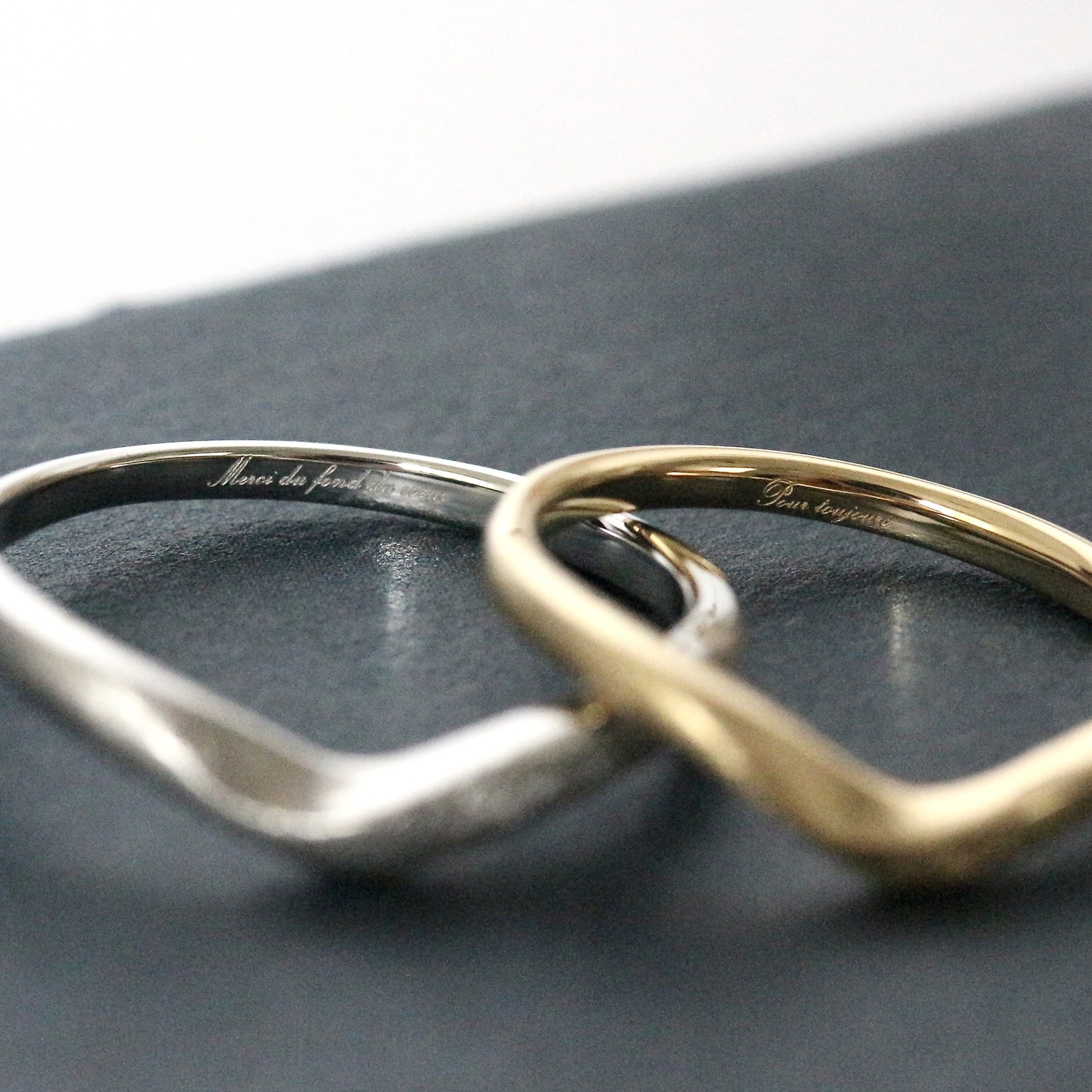 素材は、男性がプラチナ、女性がイエローゴールド。