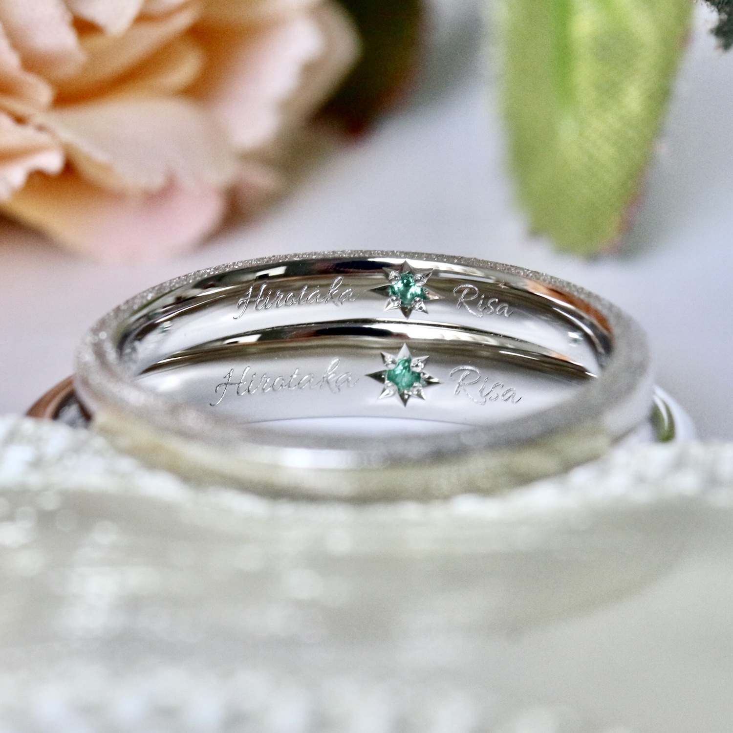 お二人のお誕生石“エメラルド”を