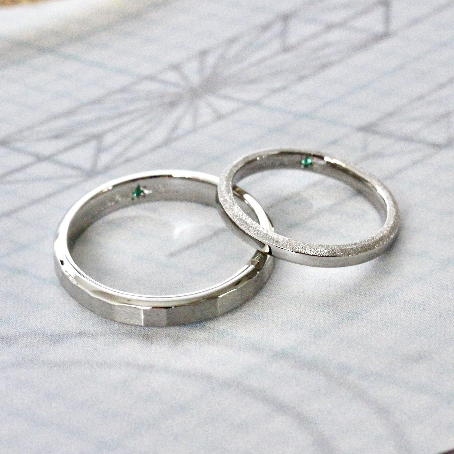 男性の指輪には《槌目 夏》の模様を。