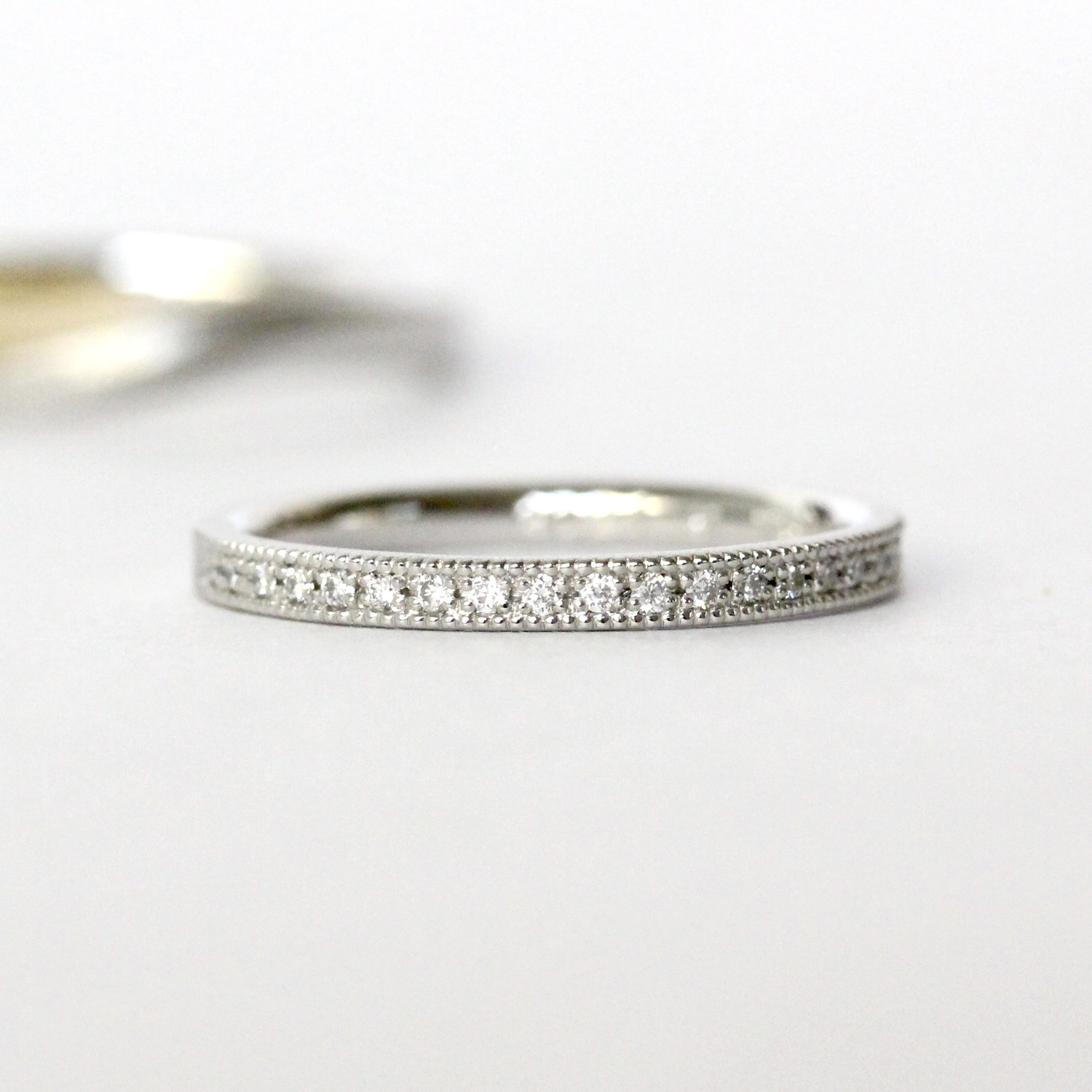 ハーフエタニティの控えめなきらめきとミル打ち。