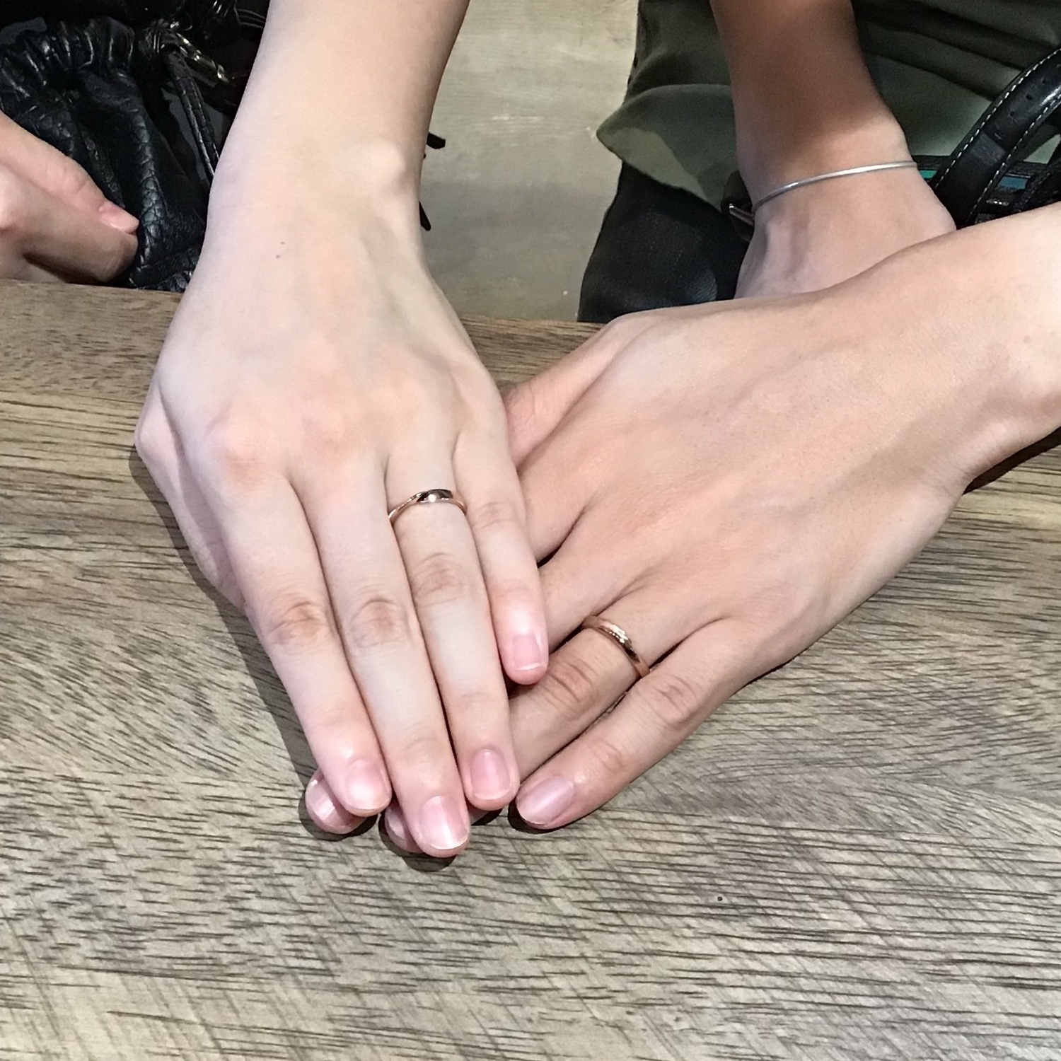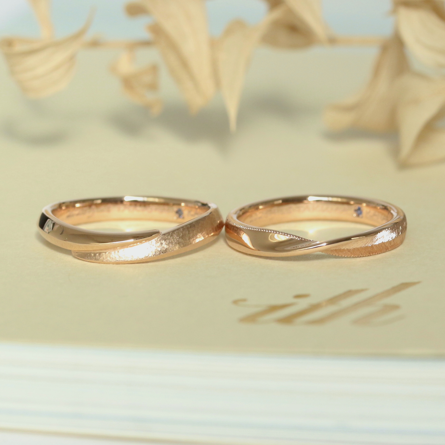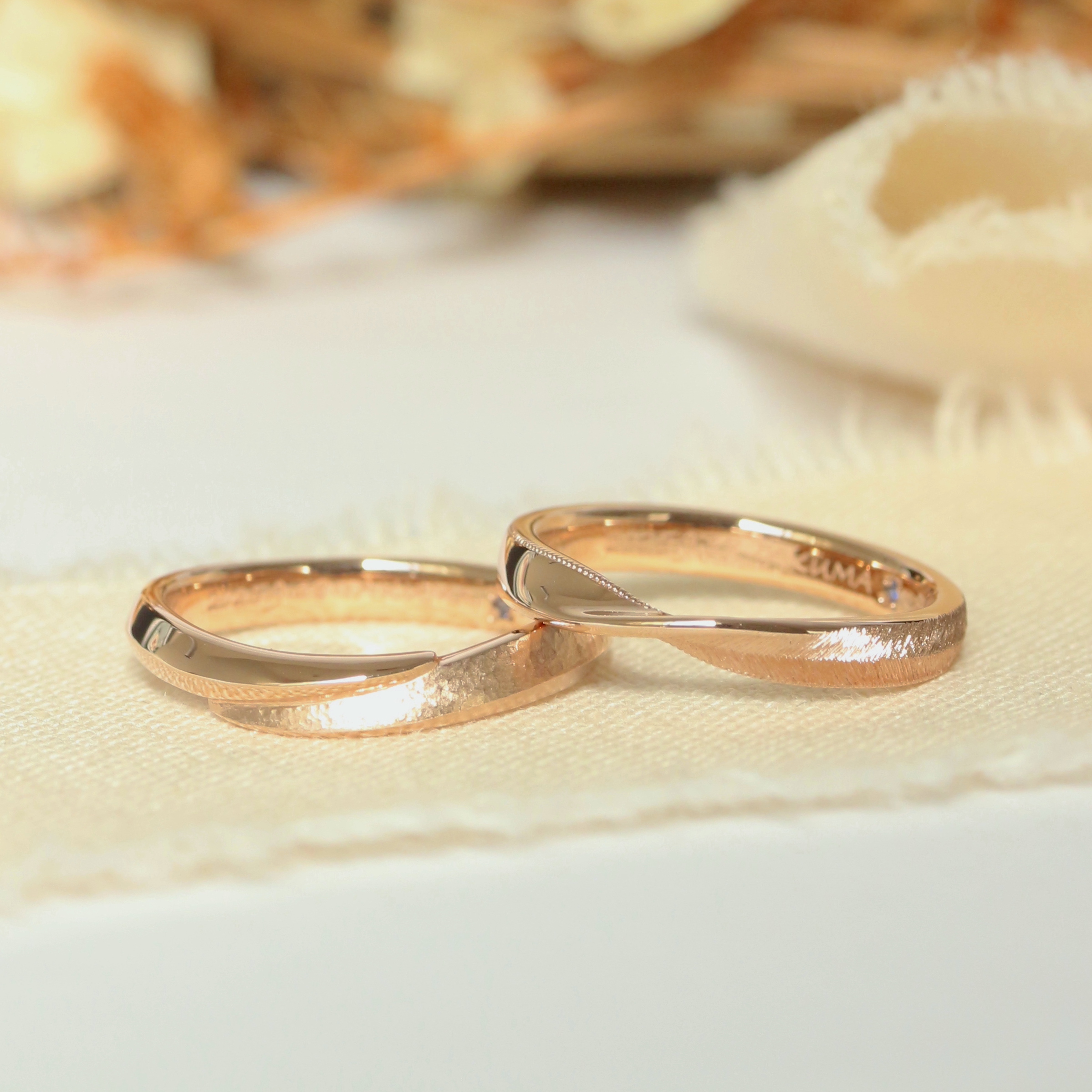 素材にはお二人ともピンクゴールドを選ばれ、