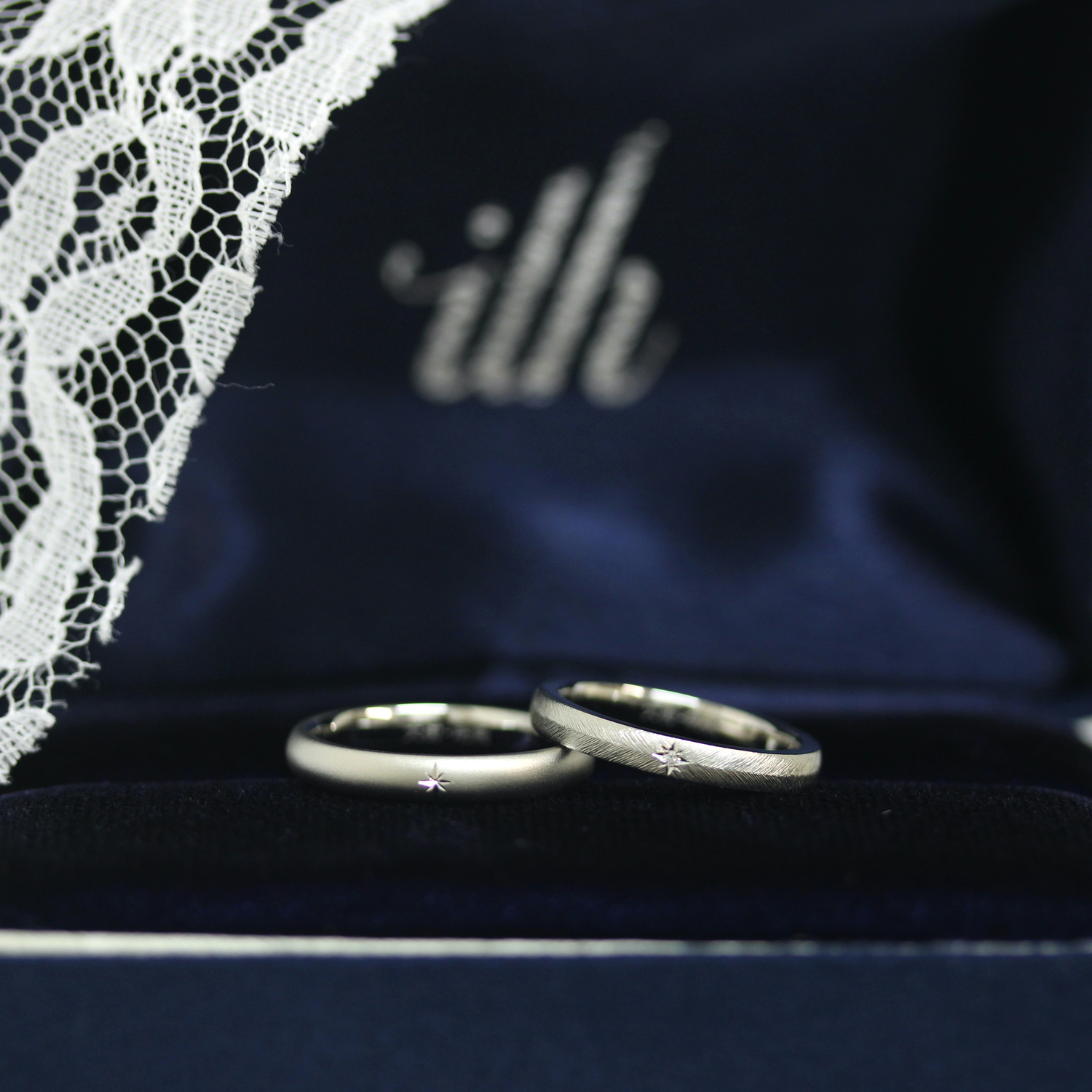 それぞれのお手元でやさしく輝くお揃いの指輪が、