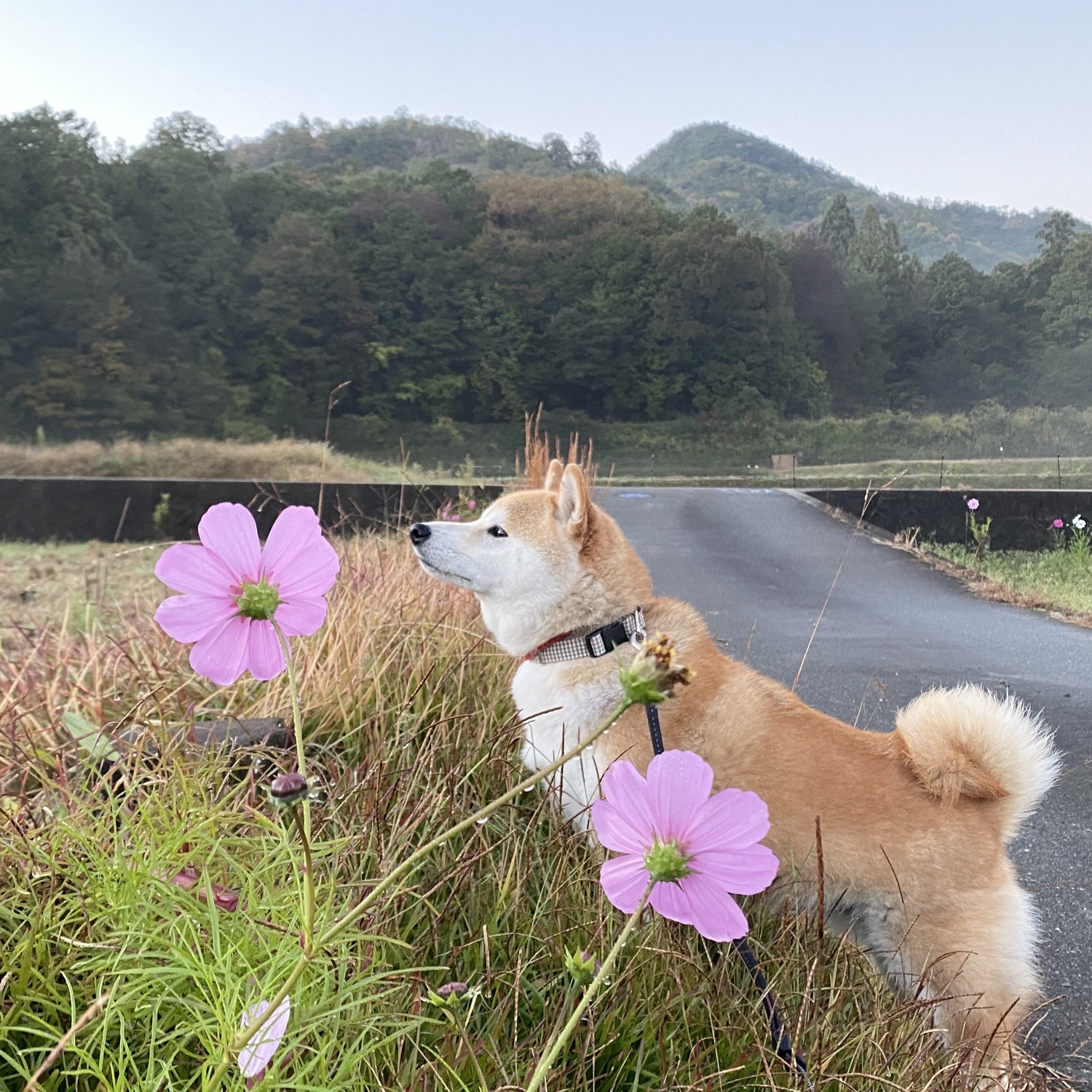 実家で飼っている柴犬のこむぎと3人でお出かけすることも。