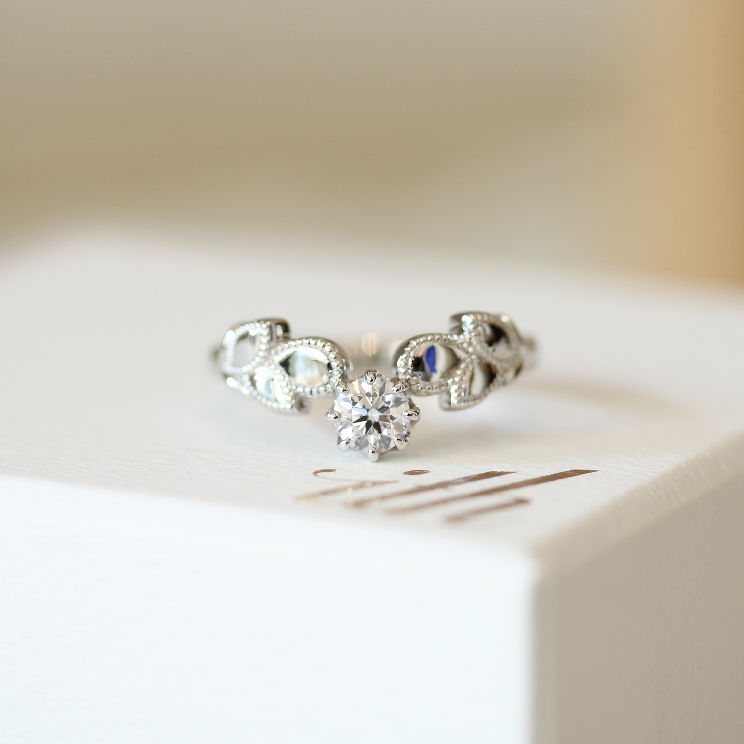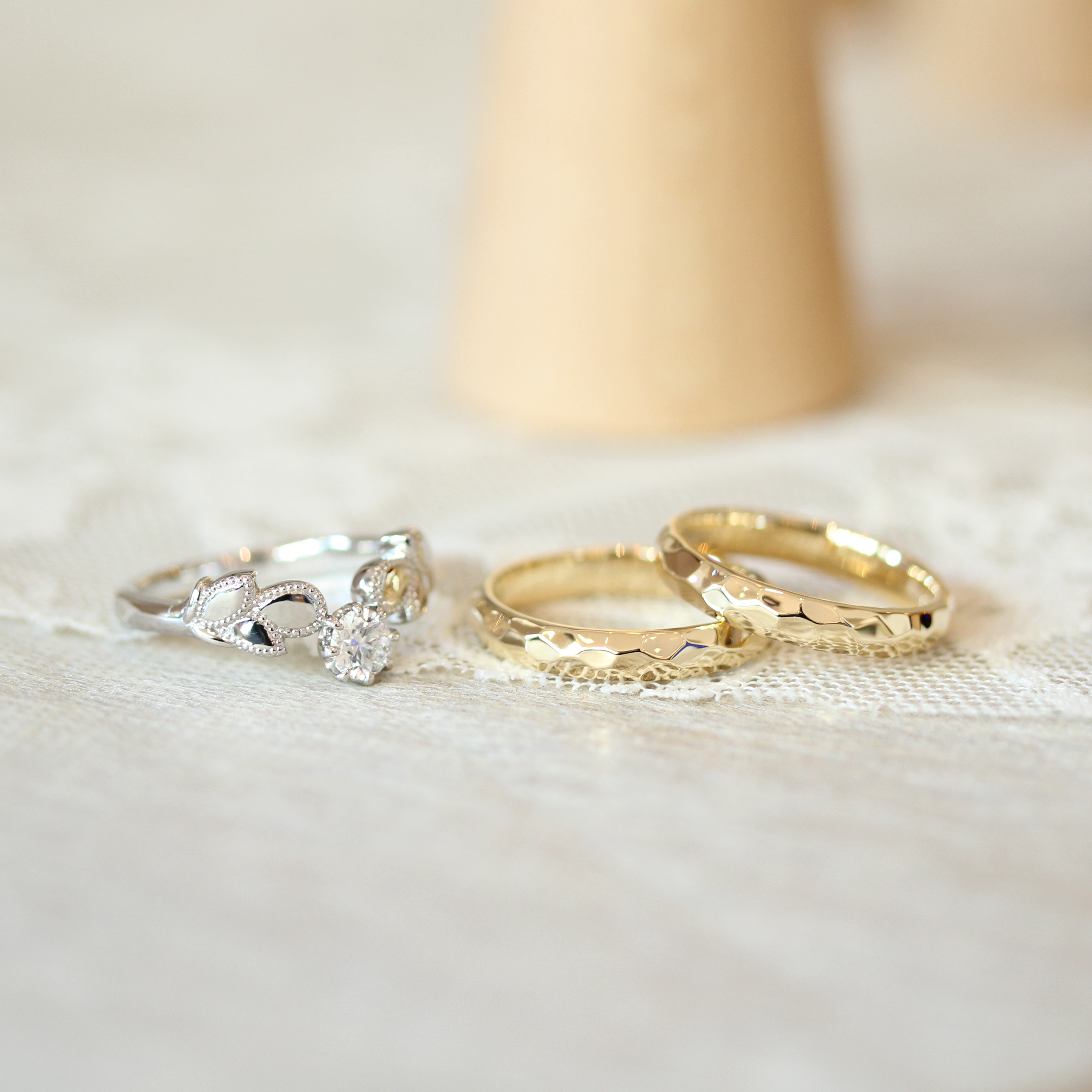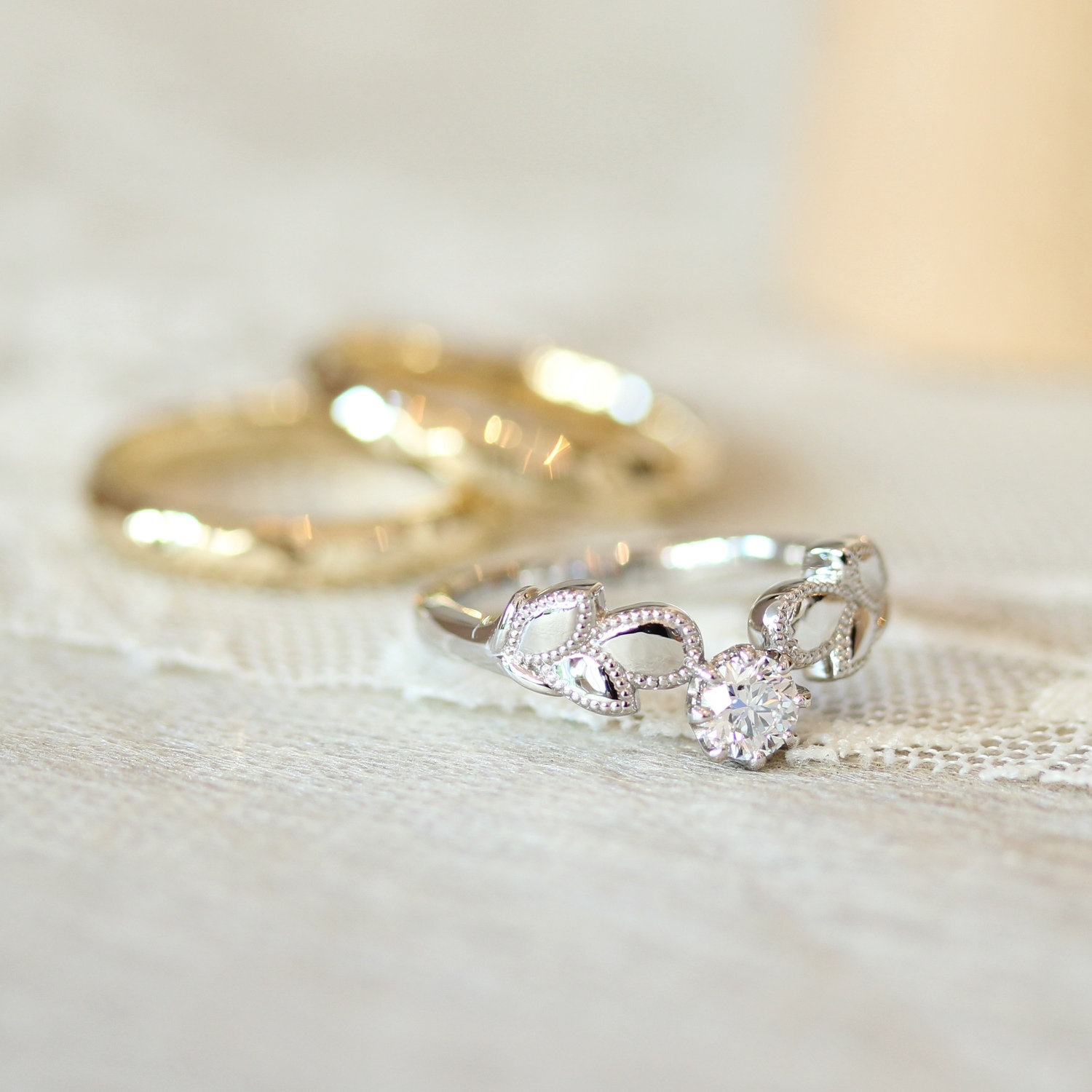 さりげない想いも込められた結婚指輪と婚約指輪。