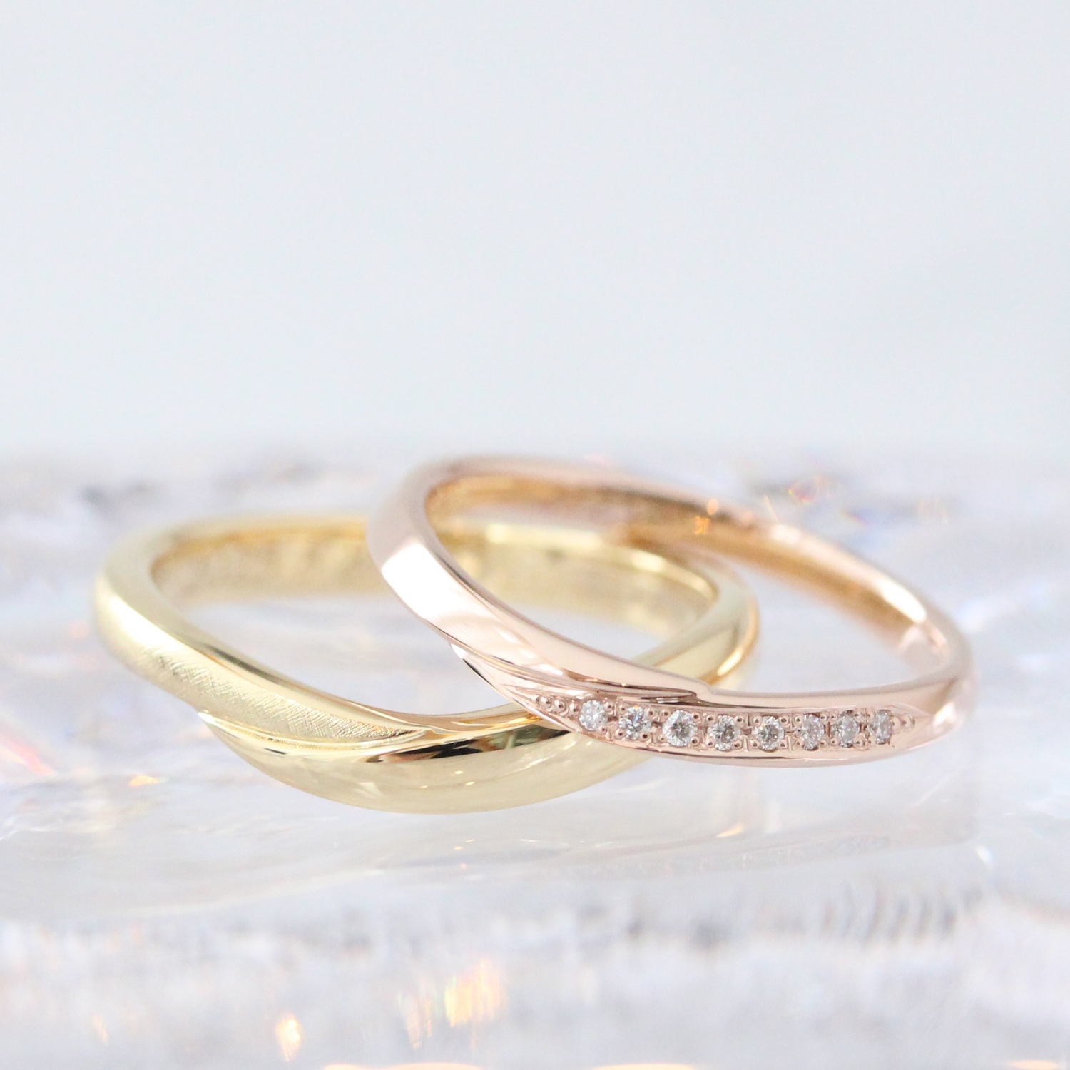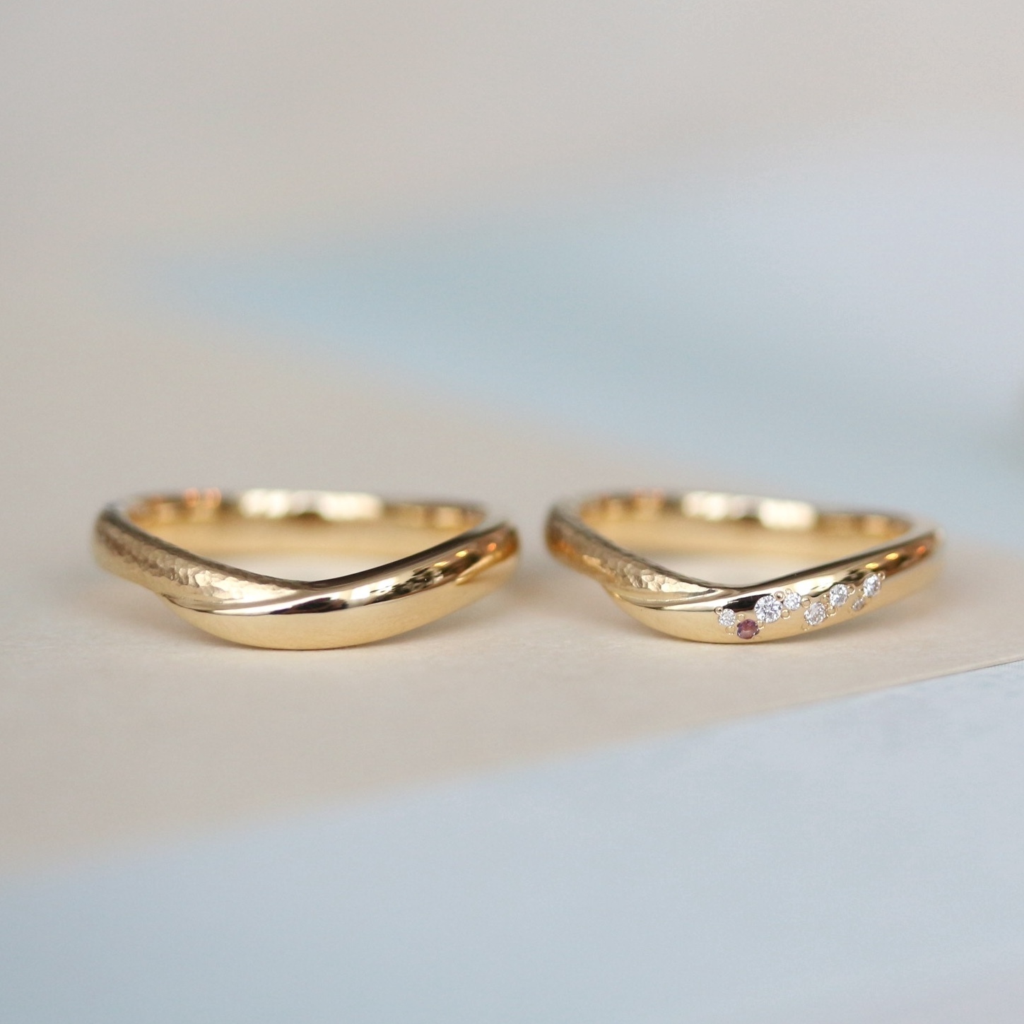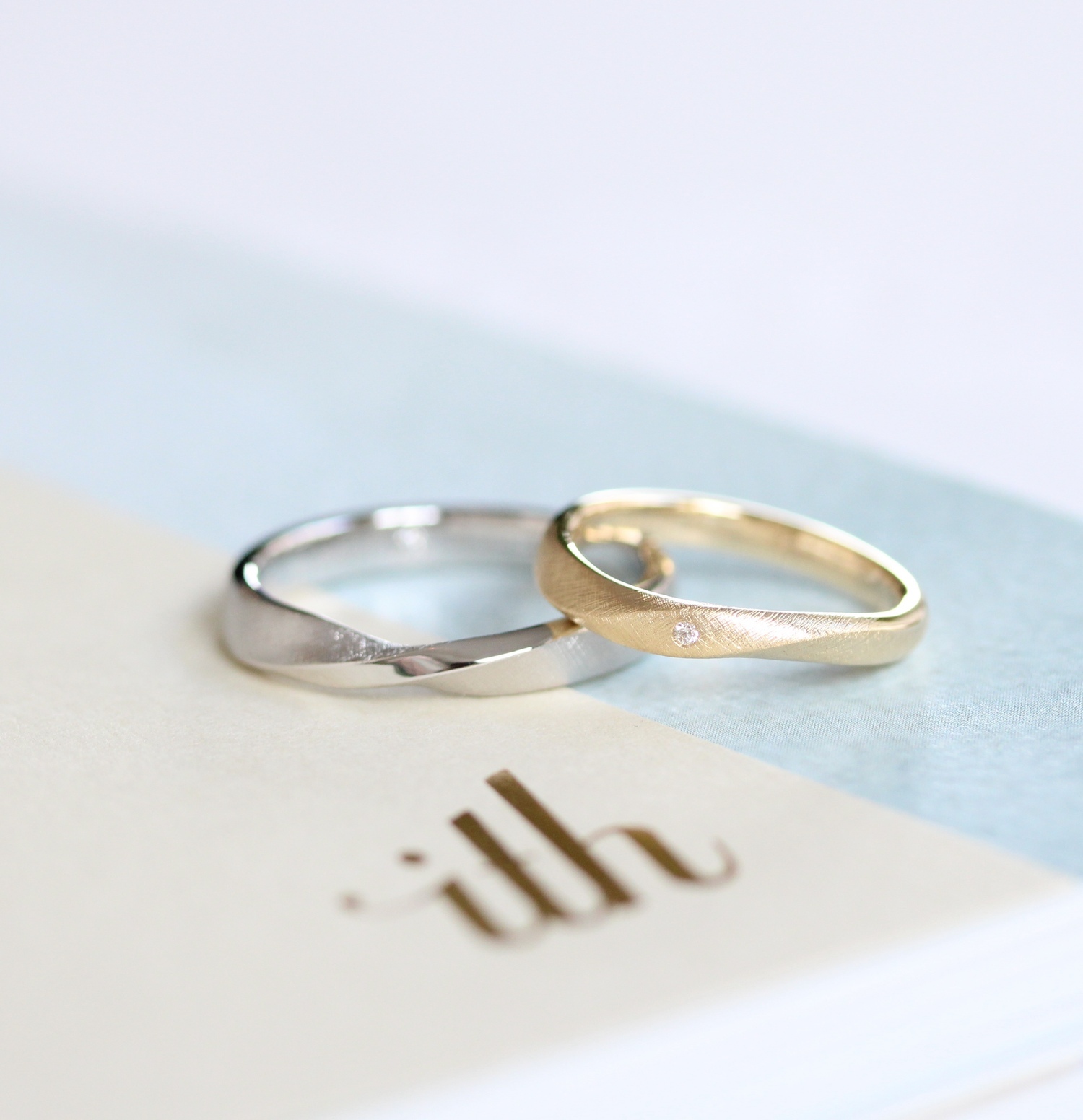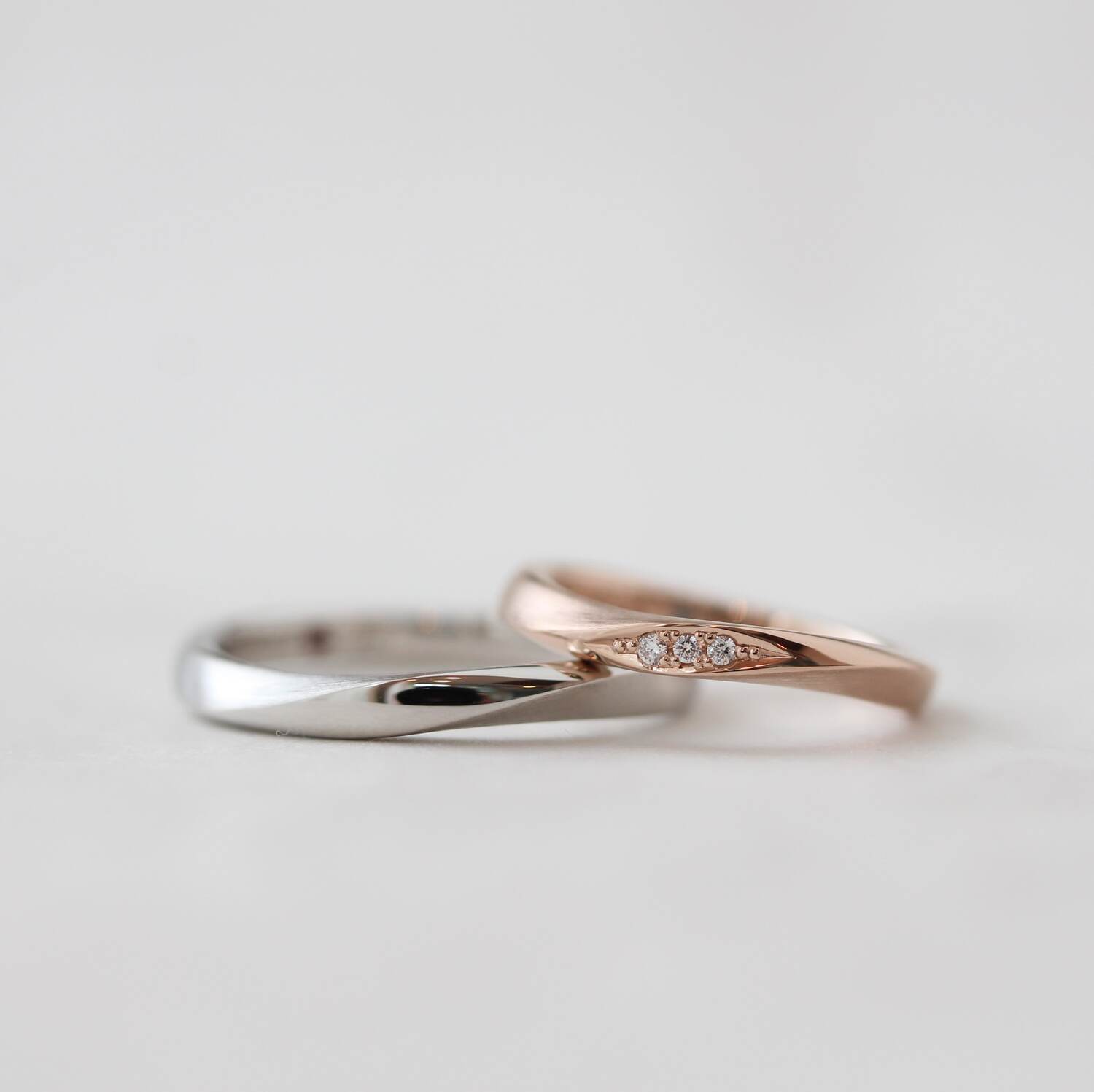 ふたつのリングが組み合わさり、ひとつの指輪になる構造。