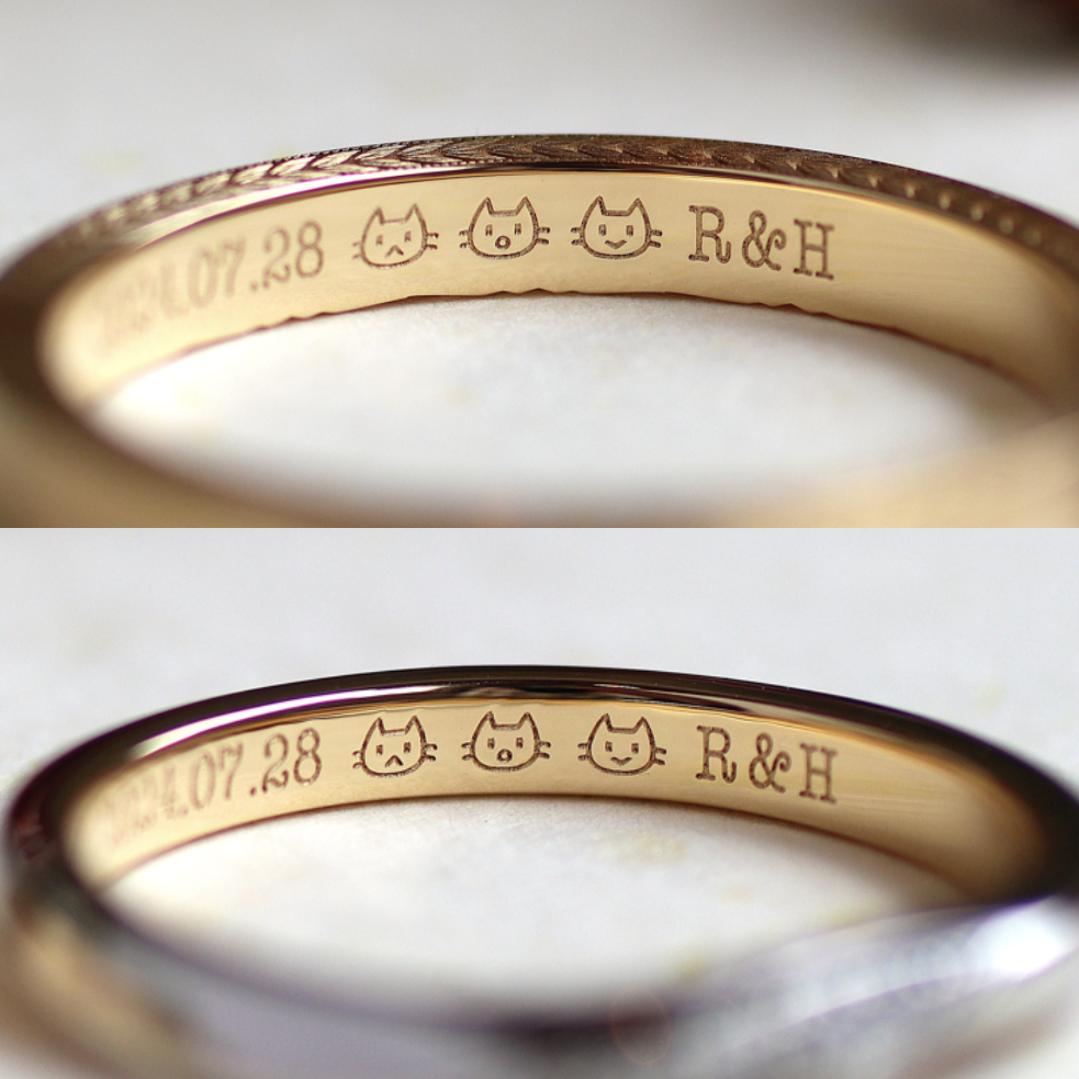 大切な猫ちゃんが、ふたりの指輪に、唯一無二の印をつけてくれました。