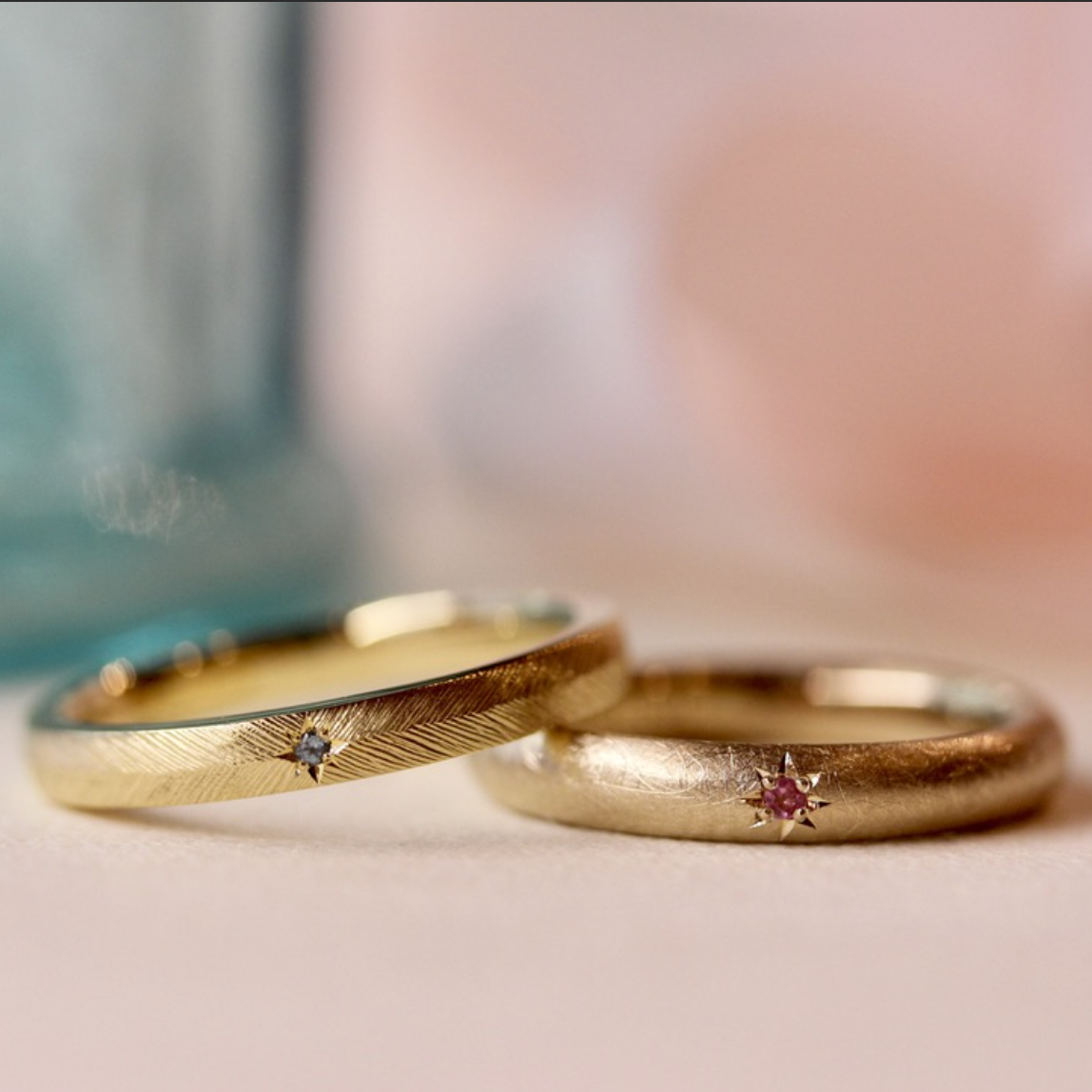 異なるデザイン結婚指輪を選ばれたおふたり。