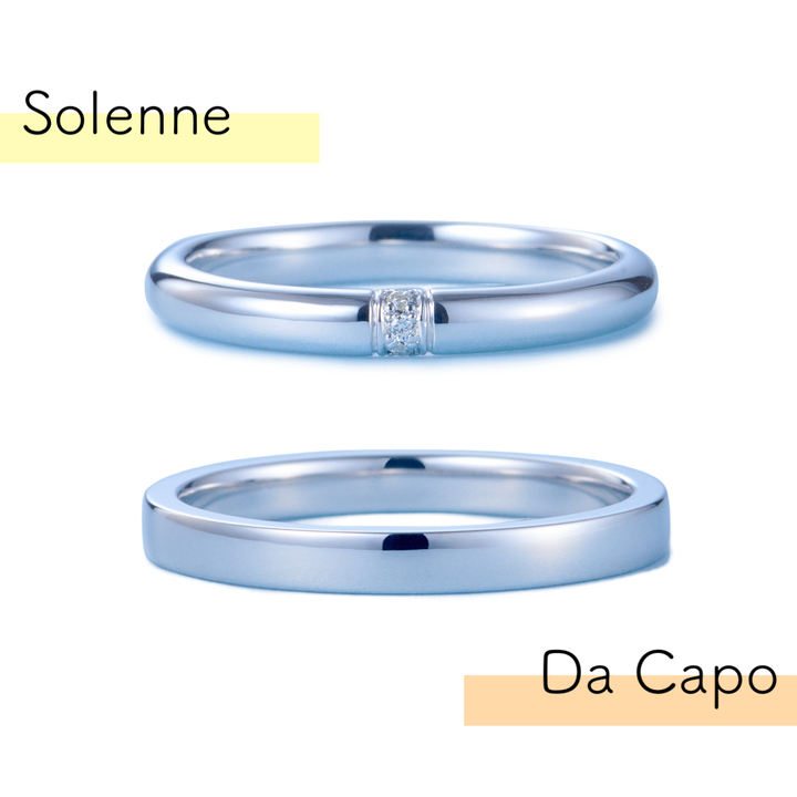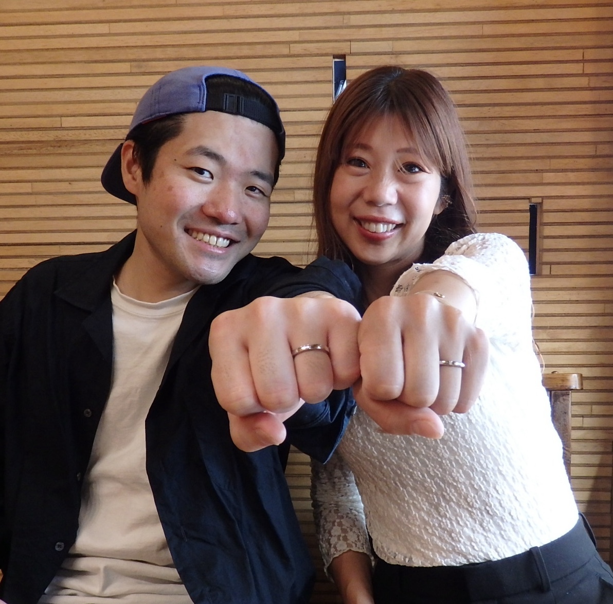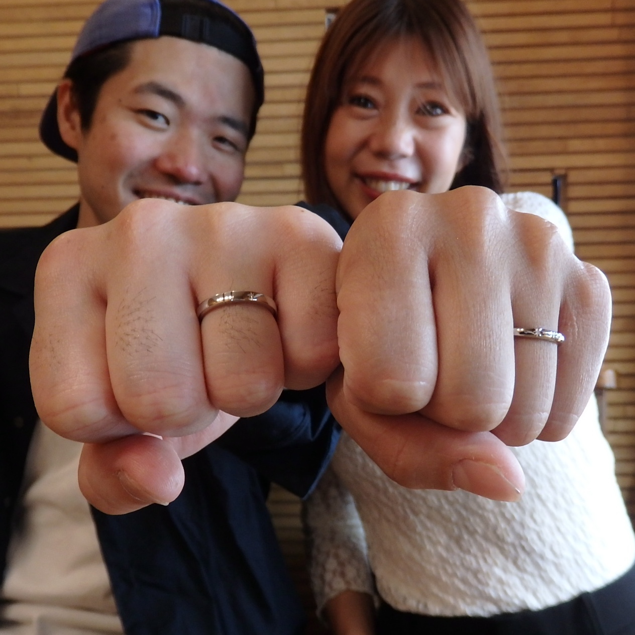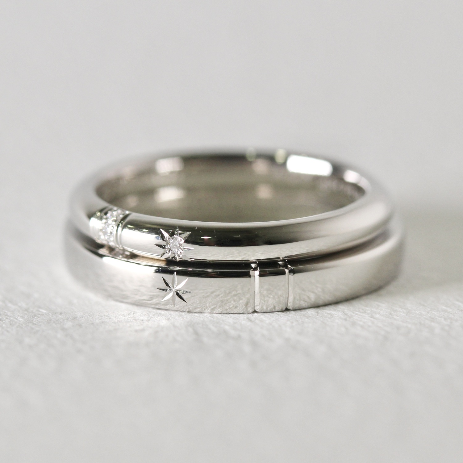 男性の指輪に、女性と同じ幅のラインを2本入れて、