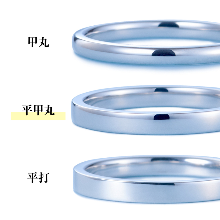 丸みの強い甲丸・四角い形の平打・そしてその中間の平甲丸