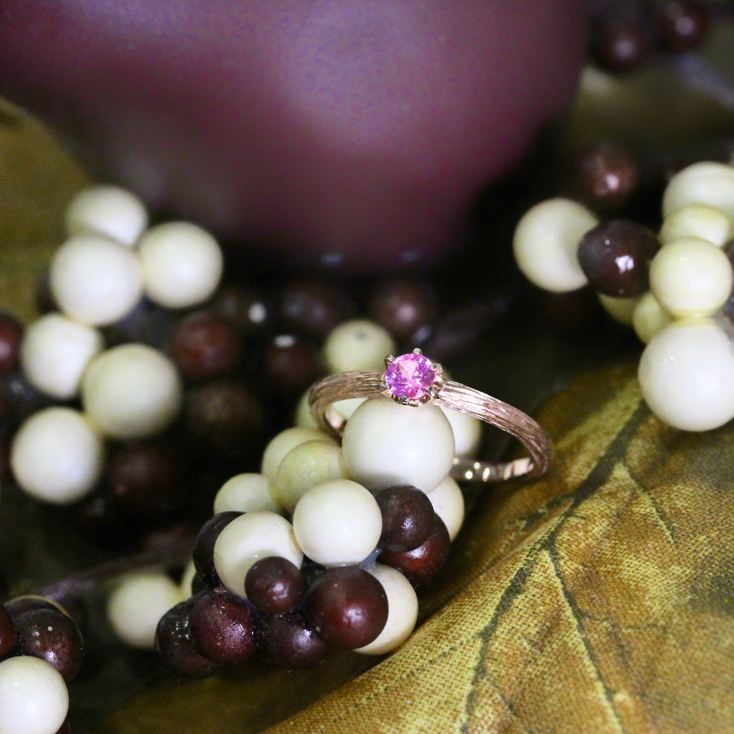 小さな木の実を思わせる、ピンクサファイアが添えられた