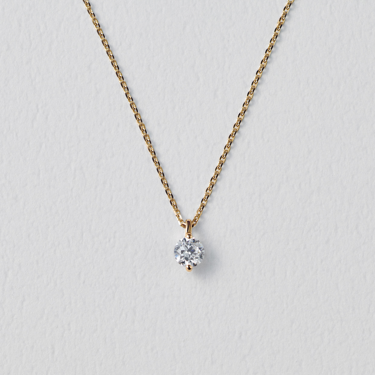 上下2点の爪がダイヤモンドを支える軽やかなプチネックレス。《メッザ》とはイタリア語で半分の意味があり、月がちょうど半分の形になった“半月”を思わせるデザイン。